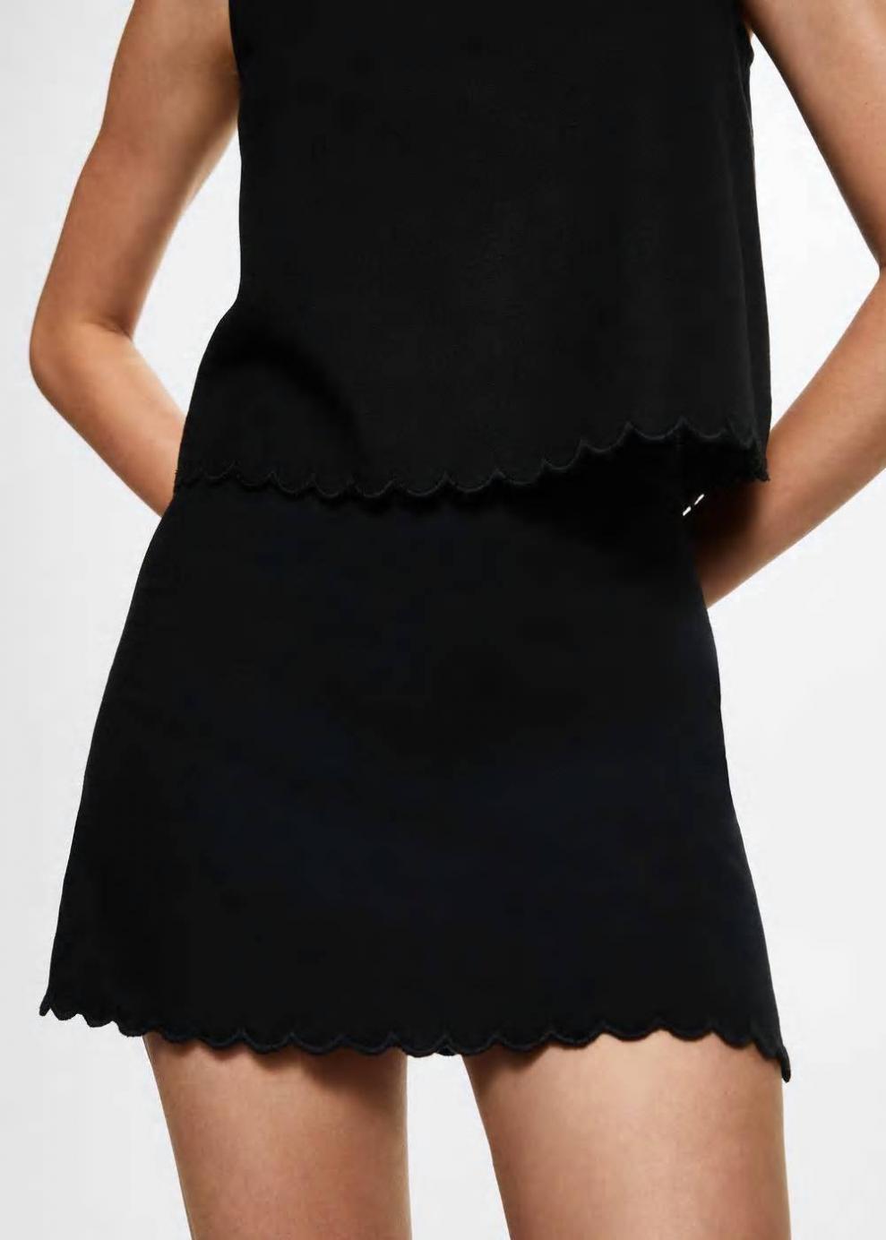 Colección Committed Tejido mezcla de algodón y lino Diseño corto Diseño recto Tiro medio Terminaciones festoneadas Cierre lateral de cremallera Total look Las prendas etiquetadas como Committed son productos que han sido confeccionadas con fibras y/o procesos de producción sostenible, reduciendo así su impacto ambiental. El objetivo de Mango es respaldar la implementación de prácticas más comprometidas con el medio ambiente, aumentando así, el número de prendas sostenibles en su colección.