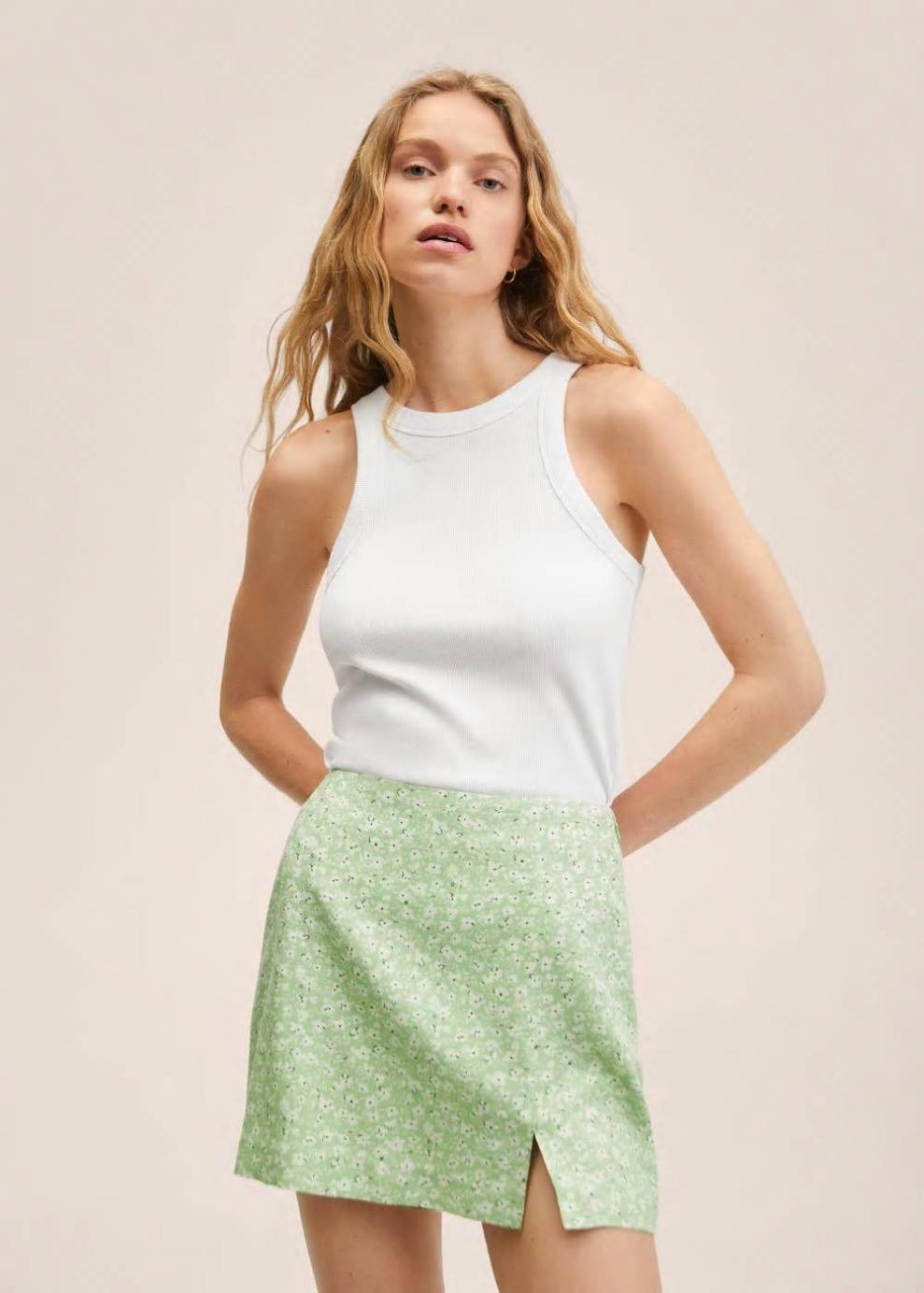 Tejido mezcla de lino Estampado de flores Estampado margaritas Diseño corto Diseño recto Tiro medio Forro interior Cierre lateral de cremallera Las prendas etiquetadas como Committed son productos que han sido confeccionadas con fibras y/o procesos de producción sostenible, reduciendo así su impacto ambiental. El objetivo de Mango es respaldar la implementación de prácticas más comprometidas con el medio ambiente, aumentando así, el número de prendas sostenibles en su colección.
