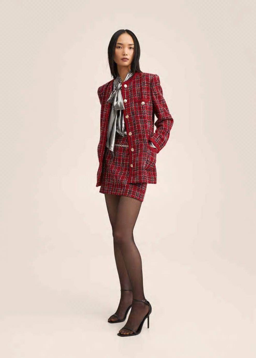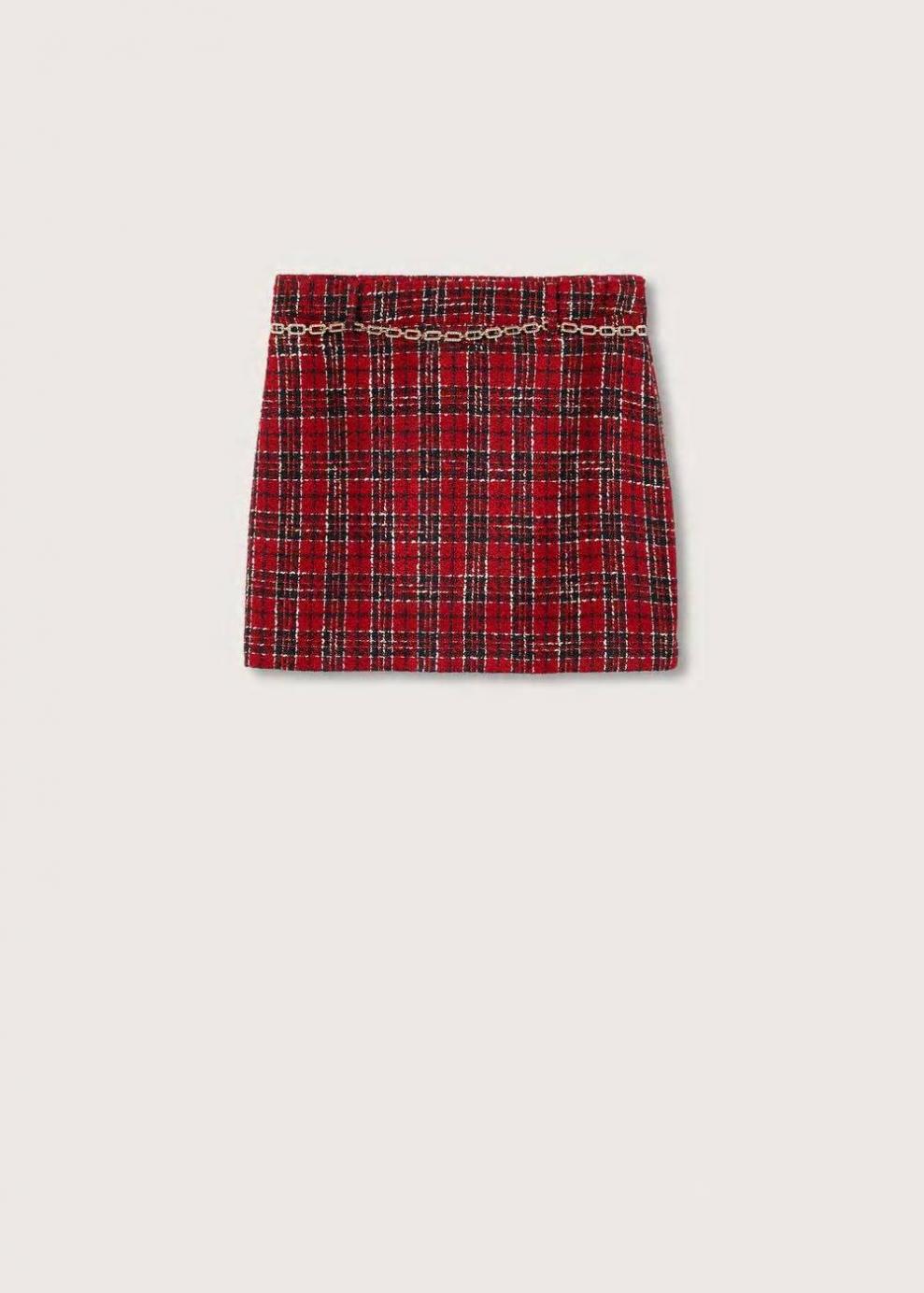 Tejido tweed Tejido con lana Diseño recto Diseño corto Tiro medio Cinturón desmontable Aplique brillos Trabillas Forro interior Cierre lateral de cremallera Total look Tallaje más pequeño de lo habitual
