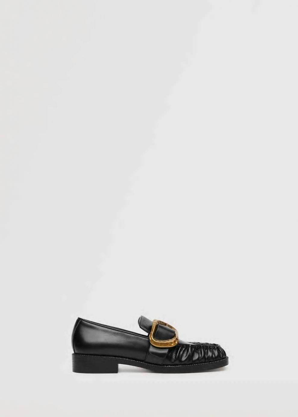 Flat Colección Committed Con piel Punta redonda Detalles fruncidos Hebilla metálica Forro interior Las prendas etiquetadas como Committed son productos que han sido confeccionadas con fibras y/o procesos de producción sostenible, reduciendo así su impacto ambiental. El objetivo de Mango es respaldar la implementación de prácticas más comprometidas con el medio ambiente, aumentando así, el número de prendas sostenibles en su colección.