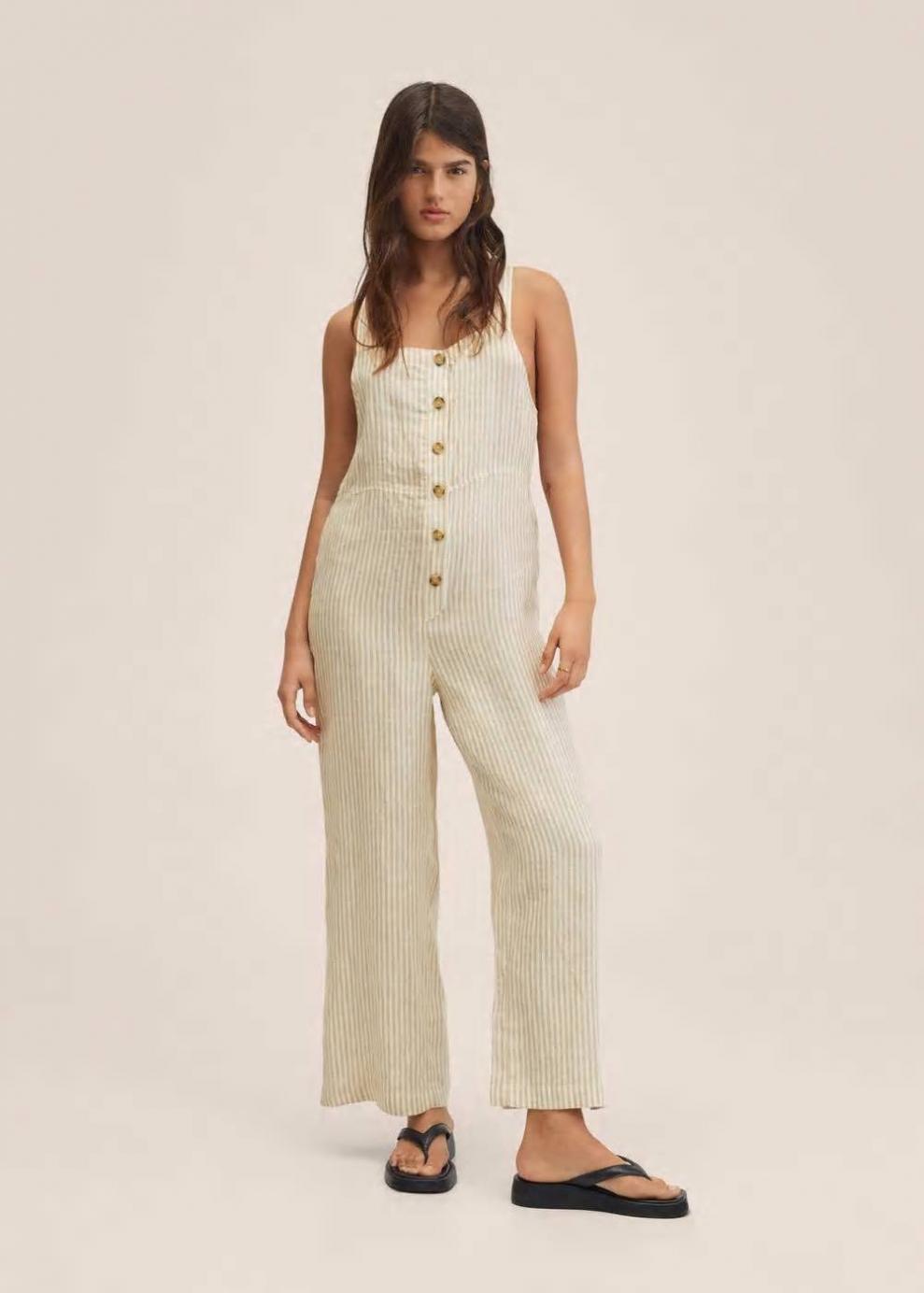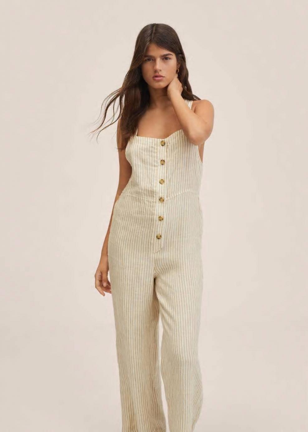 Mujer Mono 100% lino Beige | Vestidos y monos Mango