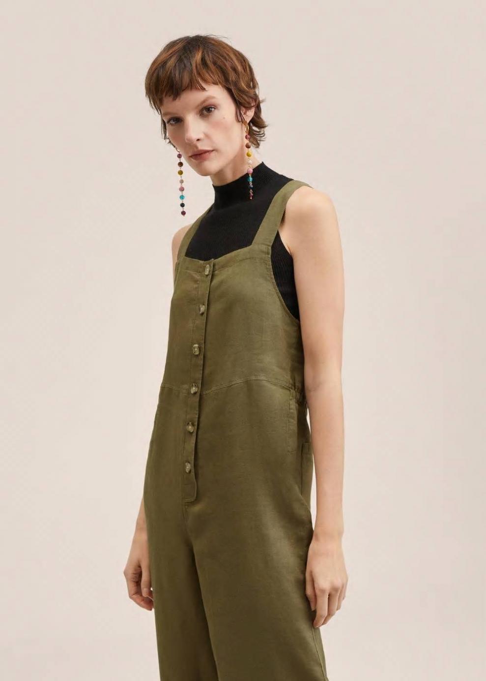 Colección Committed 100% Lino Diseño recto Diseño largo Cuello escotado Sin mangas Tirantes anchos Fruncido elástico en la cintura Dos bolsillos de parche en la parte posterior Cierre de botones en la parte delantera Las prendas etiquetadas como Committed son productos que han sido confeccionadas con fibras y/o procesos de producción sostenible, reduciendo así su impacto ambiental. El objetivo de Mango es respaldar la implementación de prácticas más comprometidas con el medio ambiente, aumentando así, el número de prendas sostenibles en su colección.