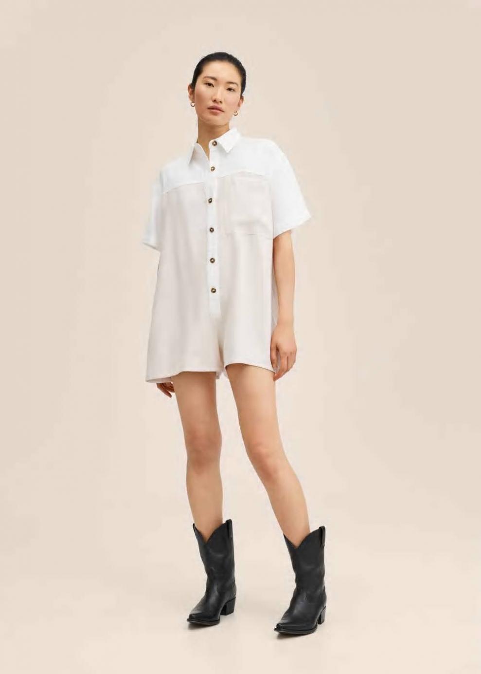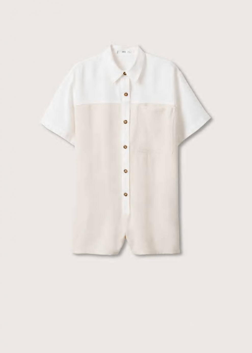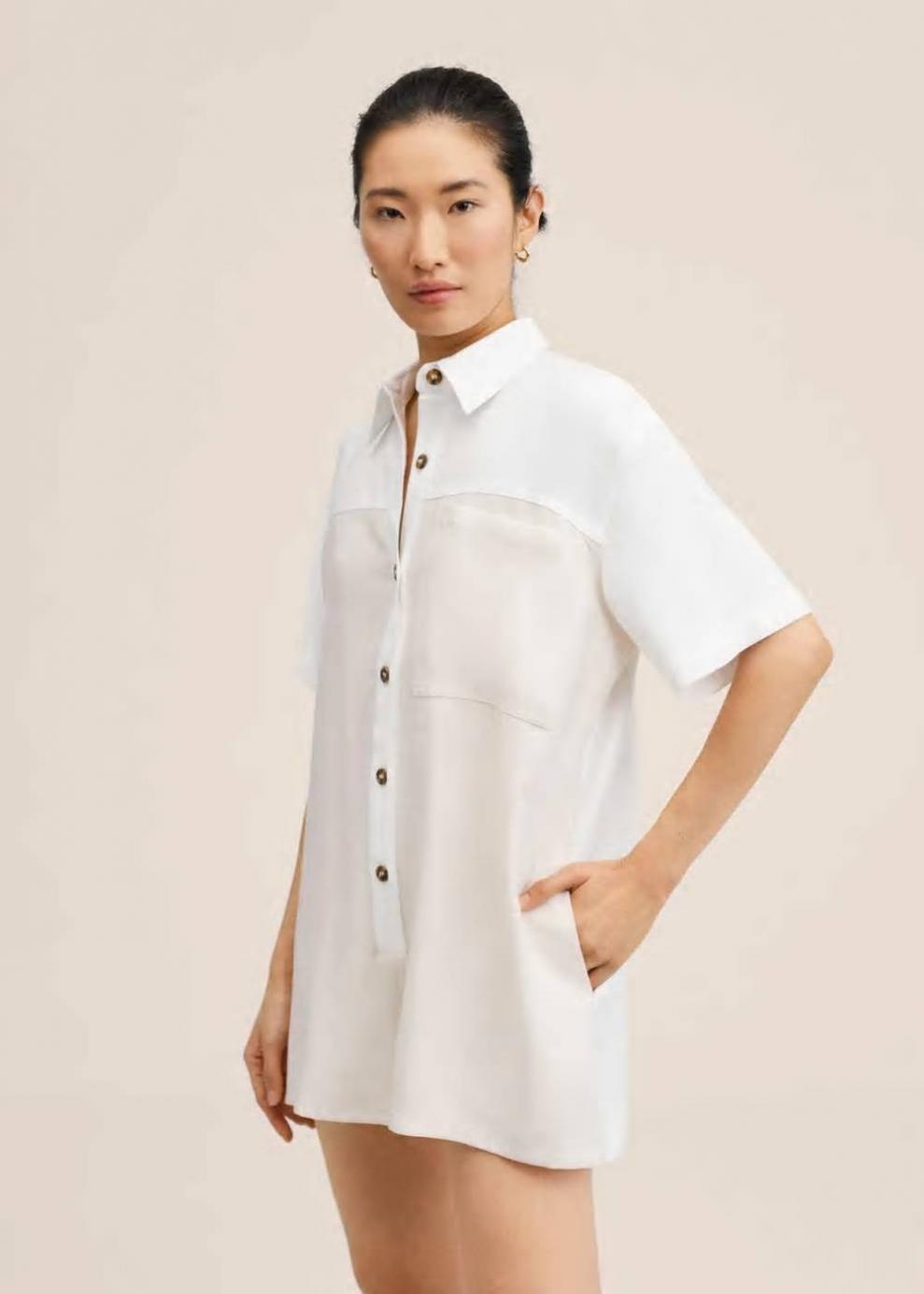 Sin forro interior Cierre delantero Diseño recto Colección Committed Tejido ligero Diseño oversize Diseño corto Cuello camisero Manga corta Costura del hombro caída Bolsillo decorativo Cierre de botones en la parte delantera Las prendas etiquetadas como Committed son productos que han sido confeccionadas con fibras y/o procesos de producción sostenible, reduciendo así su impacto ambiental. El objetivo de Mango es respaldar la implementación de prácticas más comprometidas con el medio ambiente, aumentando así, el número de prendas sostenibles en su colección.