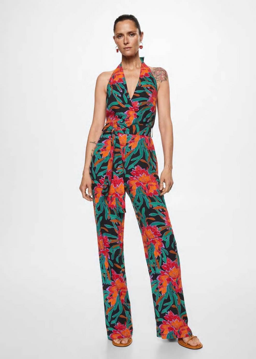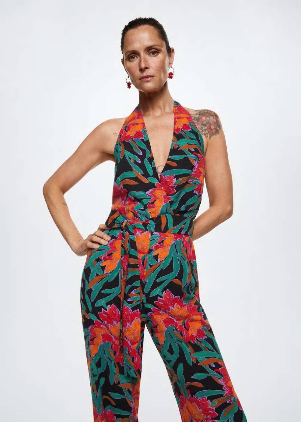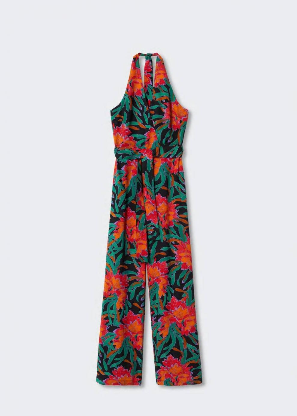 Tejido fluido Estampado floral Diseño largo Diseño recto Cuello halter Sin mangas Espalda abierta Forro interior Cinta en la cintura con cierre de lazo Cierre de lazo en el cuello Colección fiesta y ceremonia…