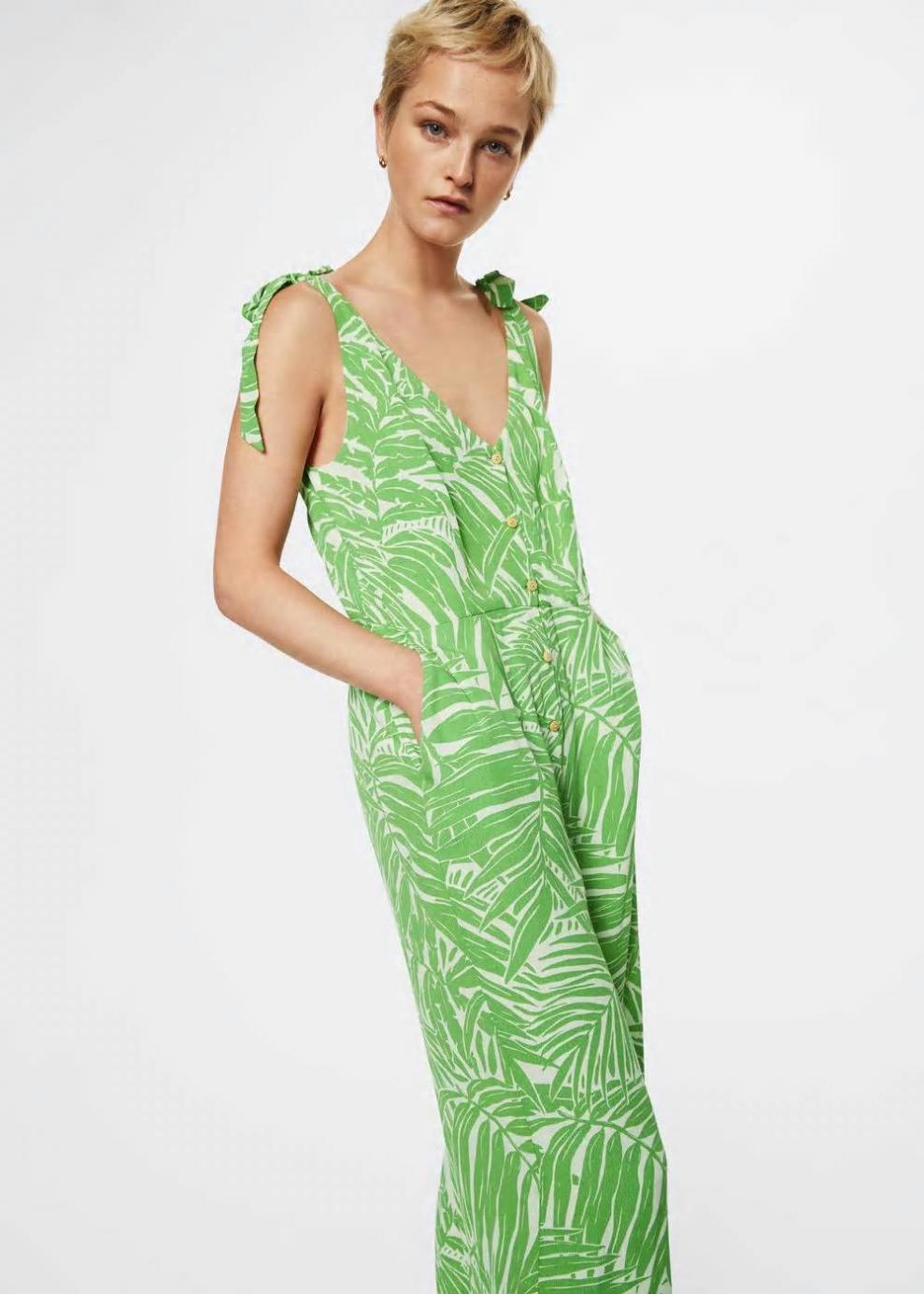 Colección Committed Tejido fluido Diseño estampado Diseño recto Diseño crop Cuello escotado Sin mangas Tirantes finos con cierre de lazo Dos bolsillos laterales Forro interior Cierre de botones en la parte delantera Las prendas etiquetadas como Committed son productos que han sido confeccionadas con fibras y/o procesos de producción sostenible, reduciendo así su impacto ambiental. El objetivo de Mango es respaldar la implementación de prácticas más comprometidas con el medio ambiente, aumentando así, el número de prendas sostenibles en su colección.
