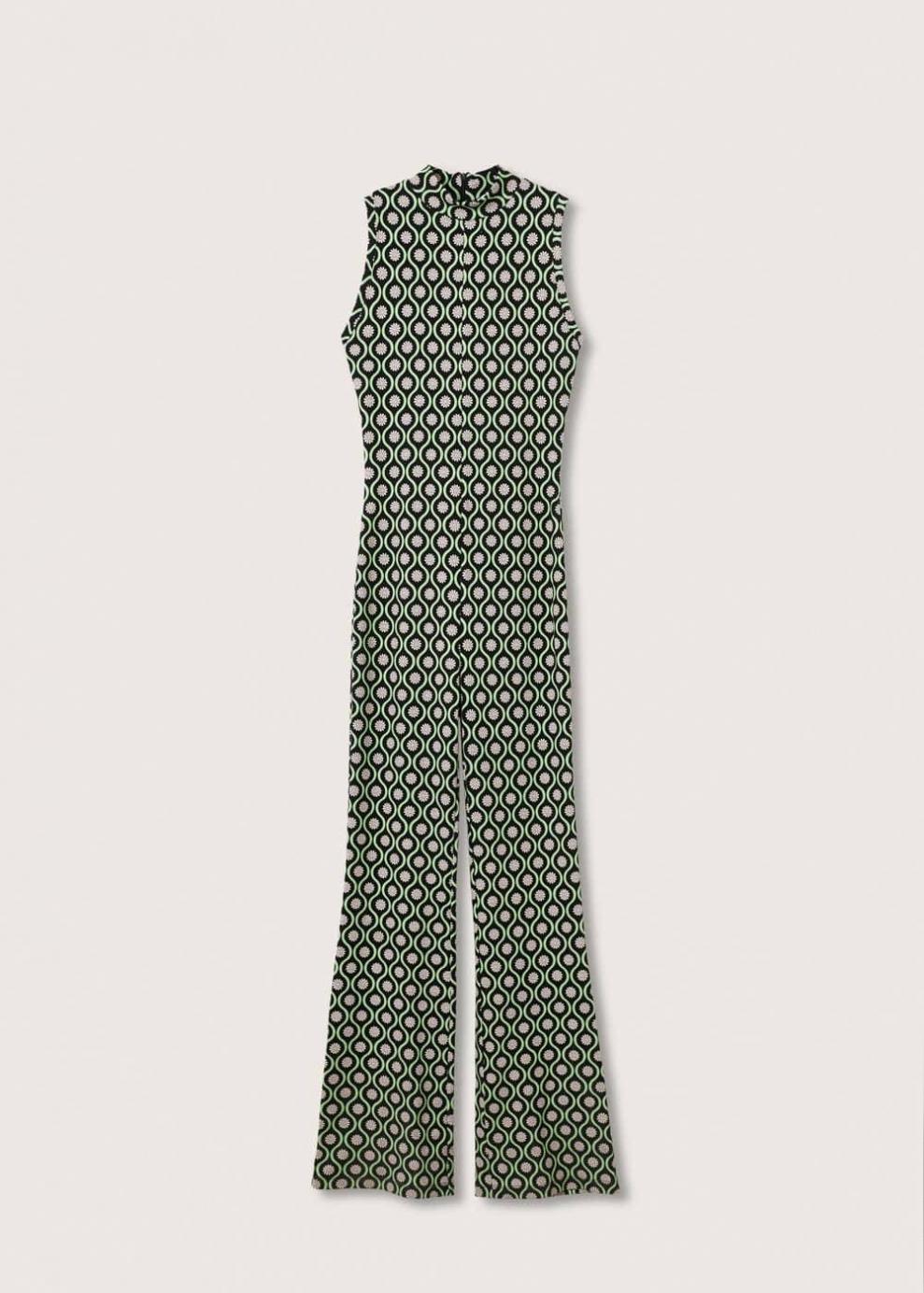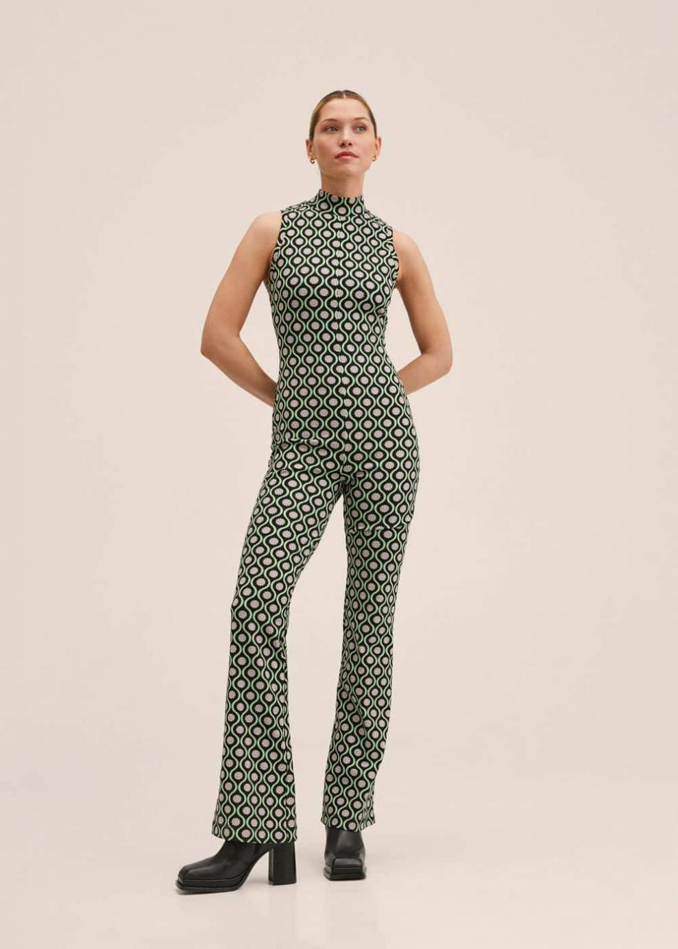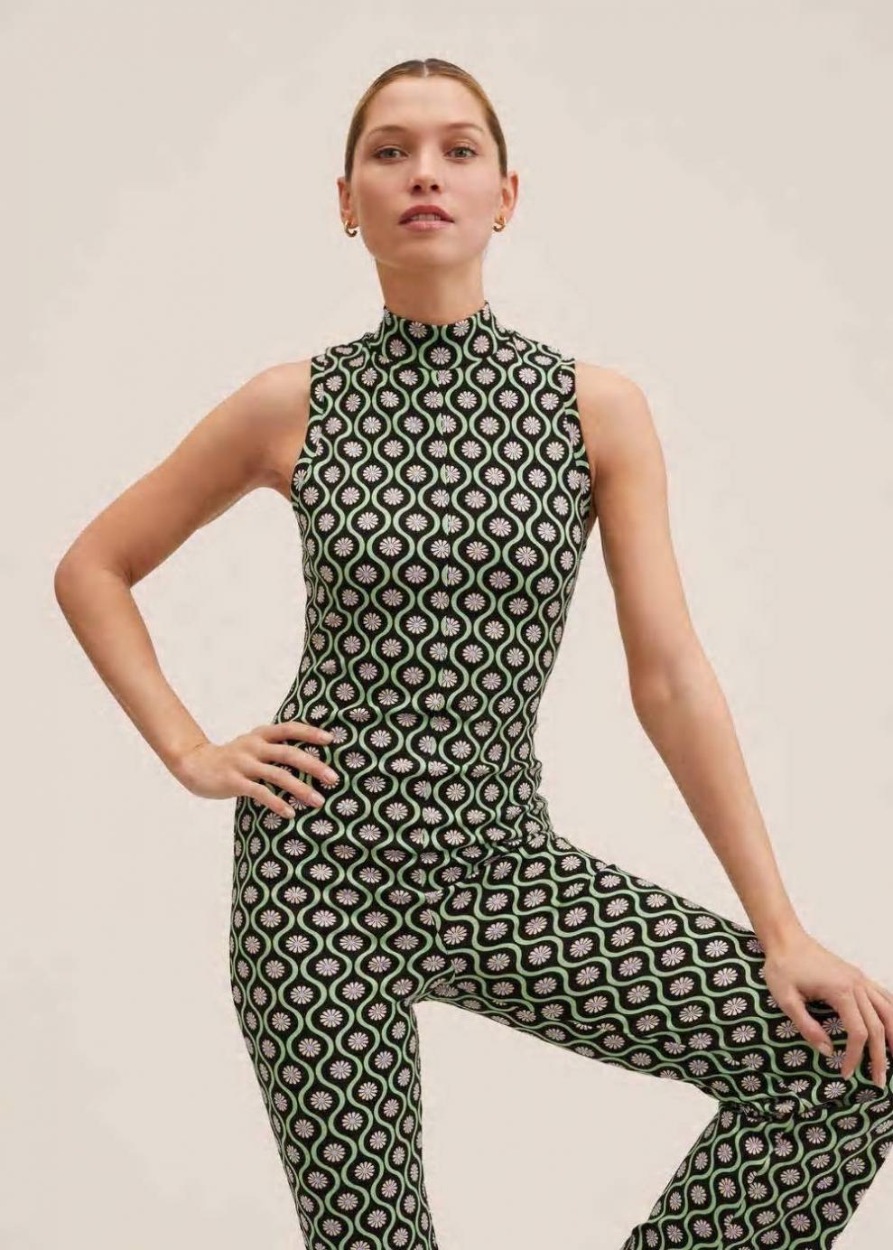 Cuello alto Tejido ligero Sin forro interior Estampado retro Cierre en el cuello Diseño recto Diseño largo Bajo acampanado Cuello perkins Sin mangas Cierre de cremallera en la parte posterior Exclusivo Online