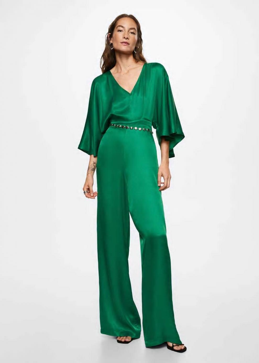 Tejido fluido Tejido satinado Diseño largo Diseño recto Cuello pico Manga tres cuartos Manga acampanada Cierre de cremallera en la parte posterior Colección fiesta y ceremonia…
