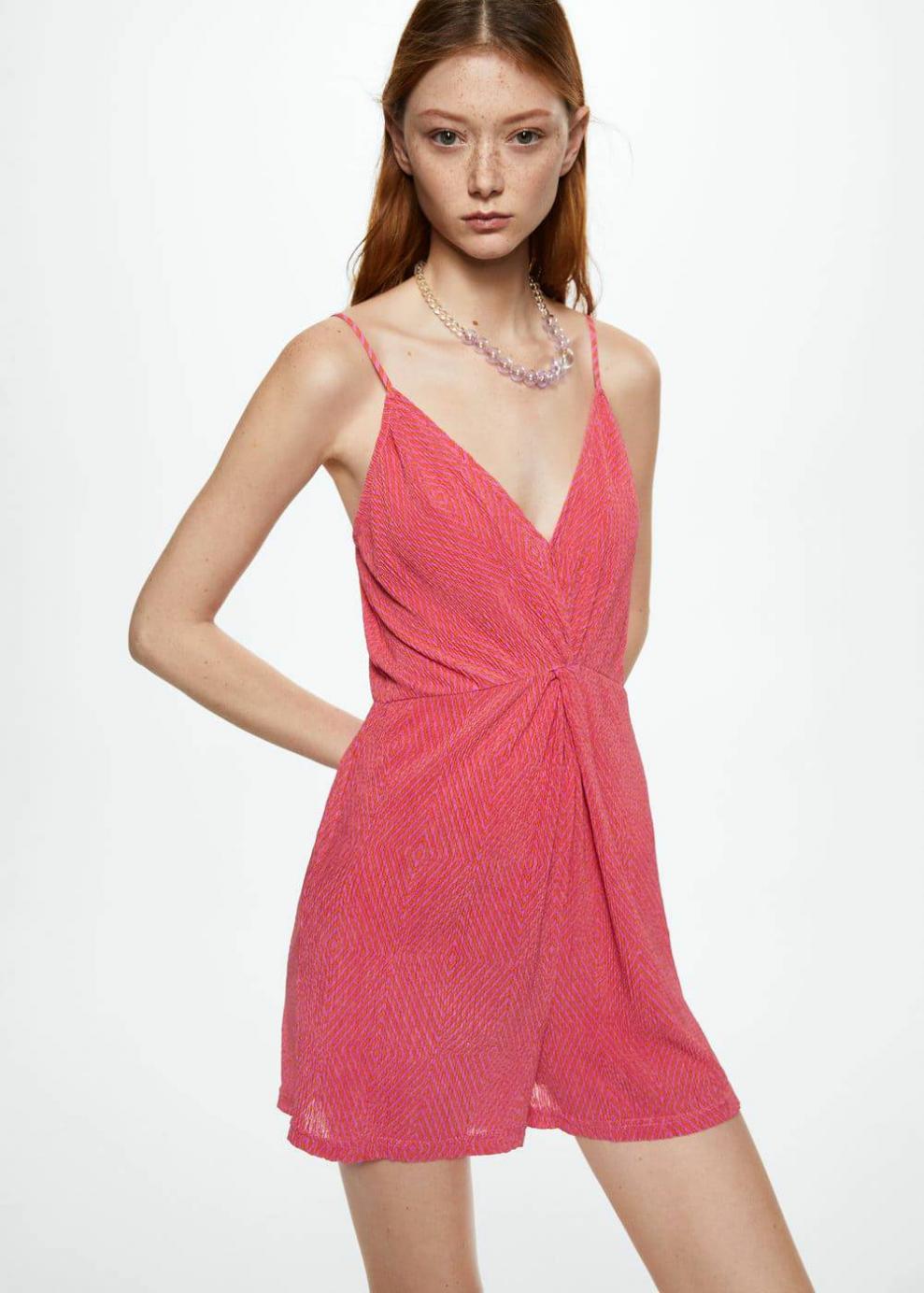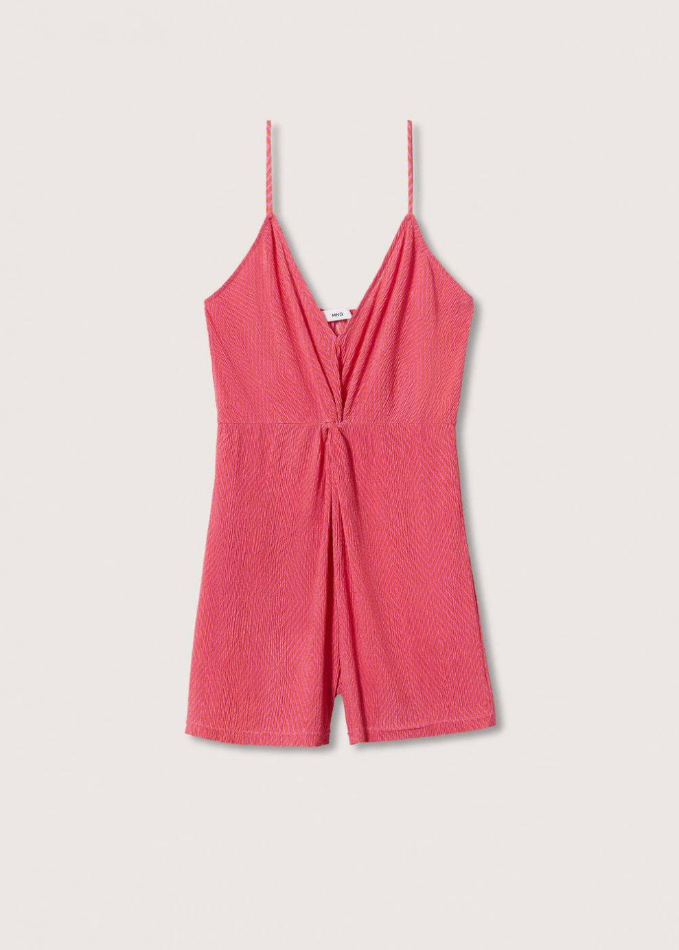 Colección Committed Tejido con textura Diseño recto Diseño corto Cuello escotado Tirantes finos ajustables Detalle nudo Cintura elástica Colección fiesta y ceremonia Disponible Plus Las prendas etiquetadas como Committed son productos que han sido confeccionadas con fibras y/o procesos de producción sostenible, reduciendo así su impacto ambiental. El objetivo de Mango es respaldar la implementación de prácticas más comprometidas con el medio ambiente, aumentando así, el número de prendas sostenibles en su colección.