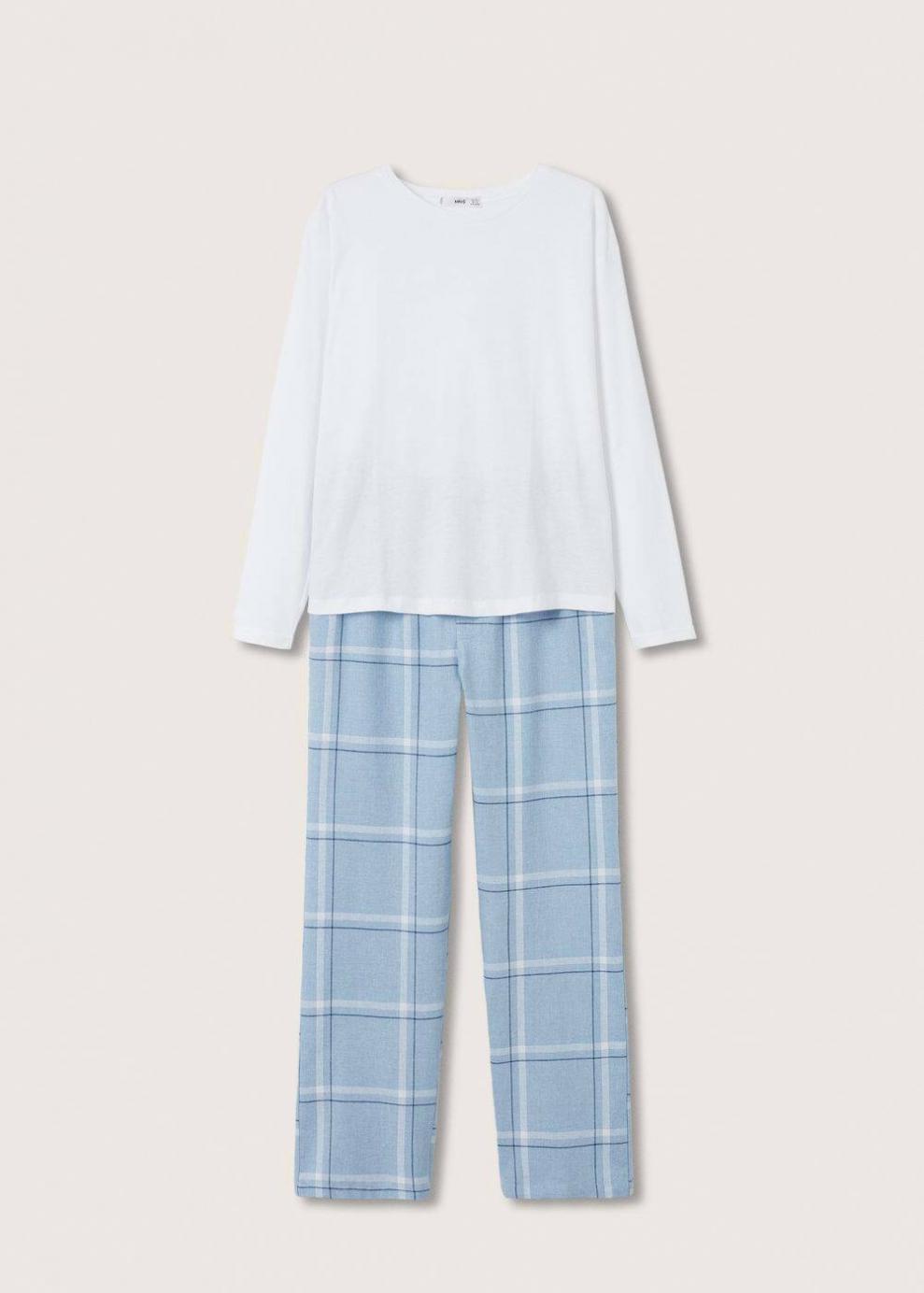 100% Algodón Set de dos Diseño largo Diseño recto Cuello redondo Manga larga Tiro medio Cintura elástica con cordón ajustable Incluye una bolsa para gu…