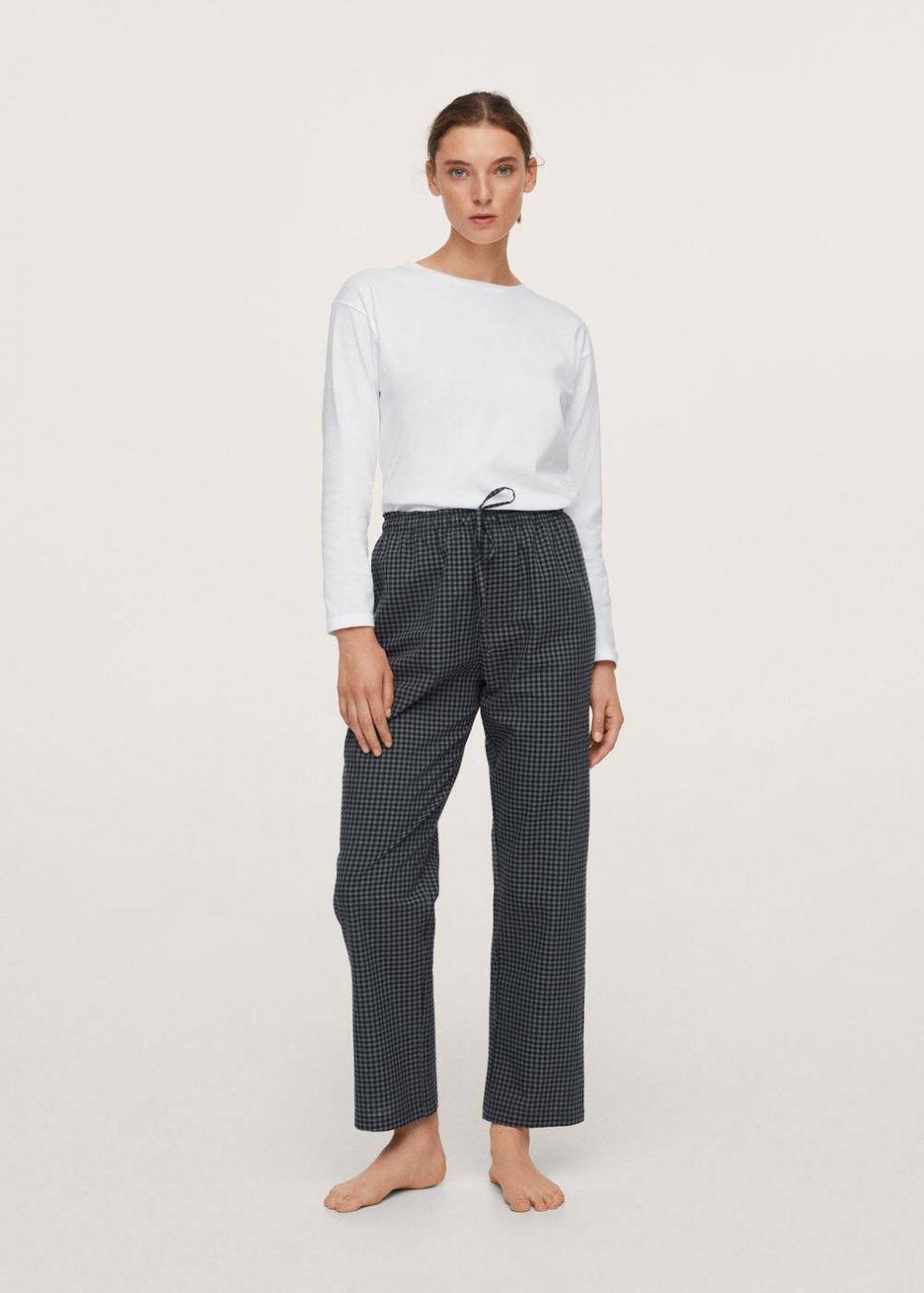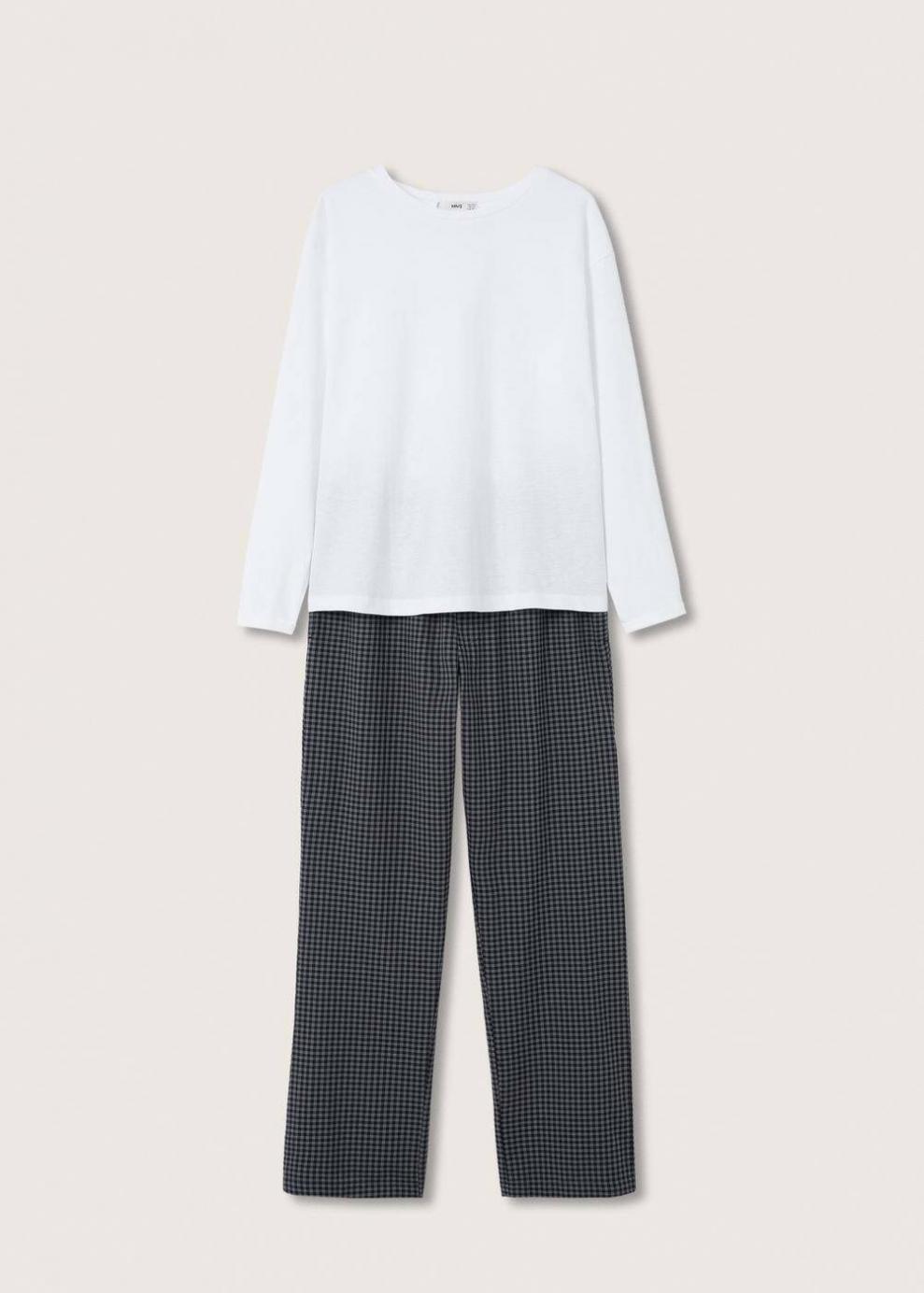 100% Algodón Set de dos Diseño largo Diseño recto Cuello redondo Manga larga Tiro medio Cintura elástica co…