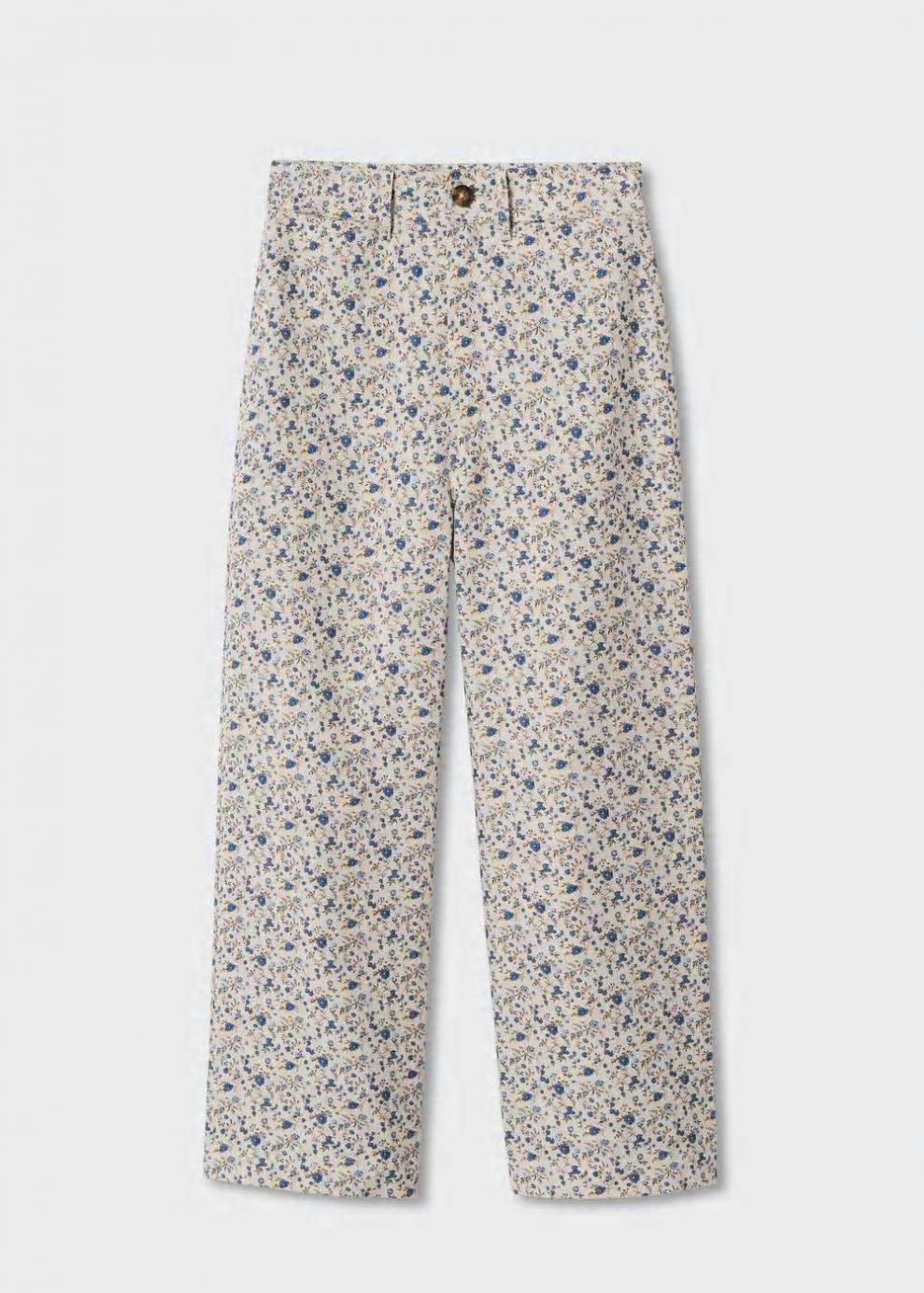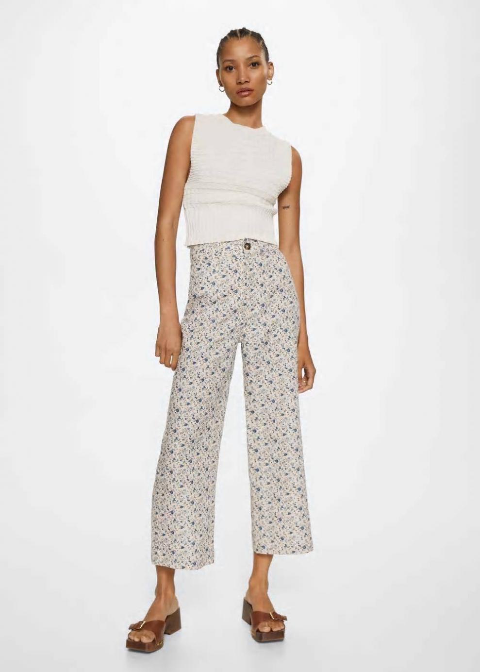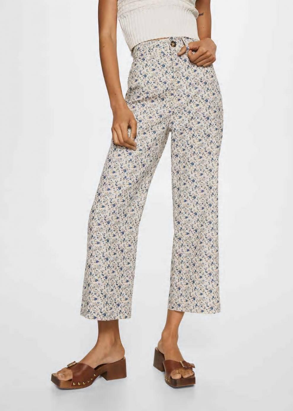 Colección Committed 100% Lino Estampado de flores Tiro alto Diseño crop Diseño recto Trabillas Cierre de cremallera y botón Las prendas etiquetadas como Committed son productos que han sido confeccionadas con fibras y/o procesos de producción sostenible, reduciendo así su impacto ambiental. El objetivo de Mango es respaldar la implementación de prácticas más comprometidas con el medio ambiente, aumentando así, el número de prendas sostenibles en su colección.