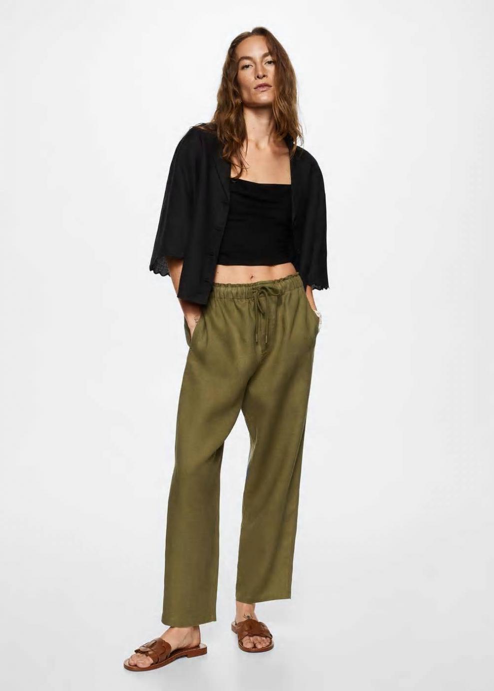 Mujer Pantalón 100% lino Khaki | Pantalones Mango