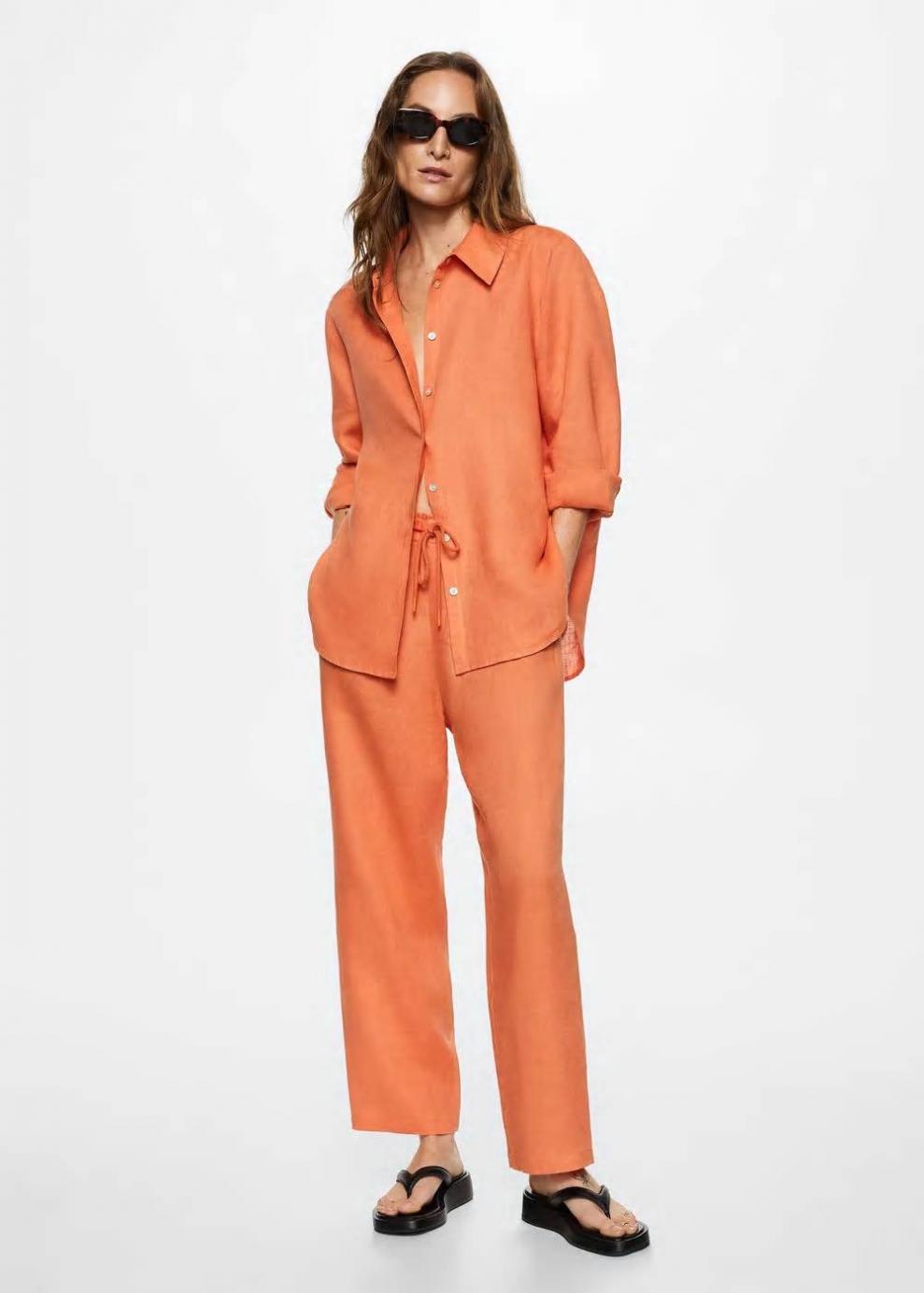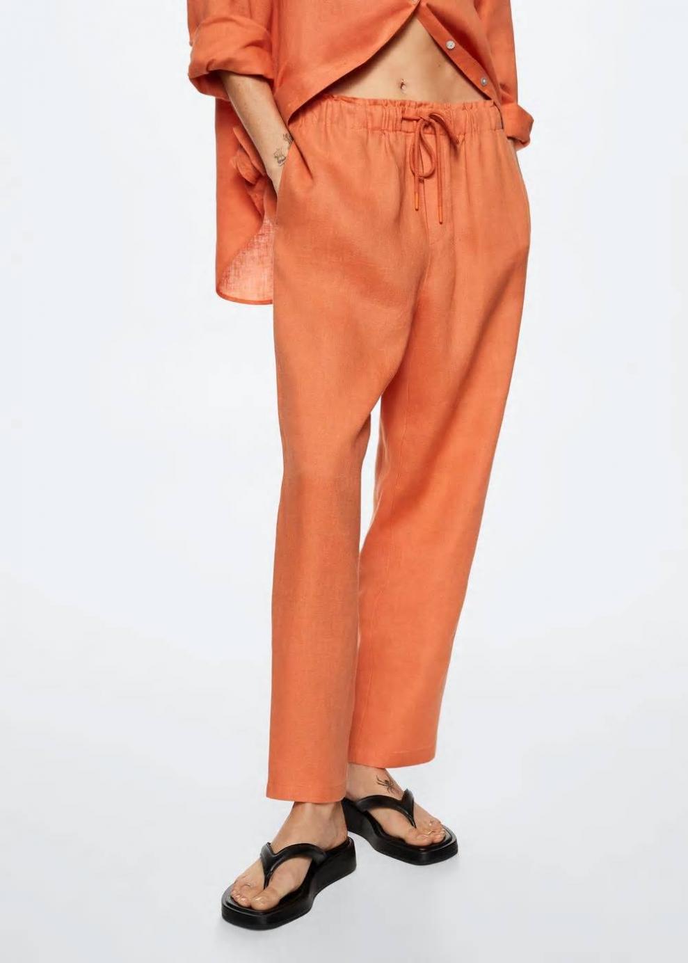 Mujer Pantalón 100% lino Mandarina | Pantalones Mango