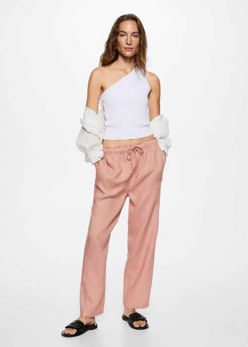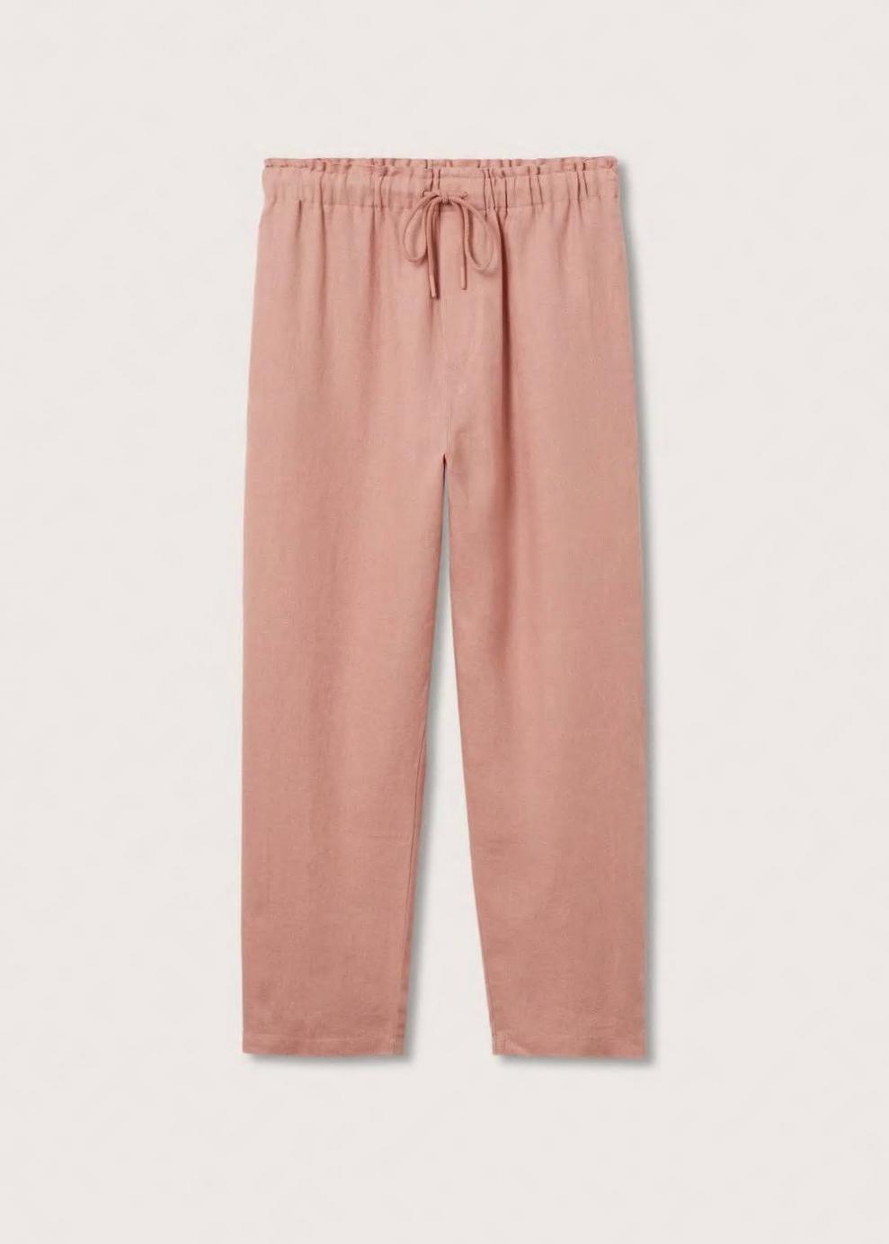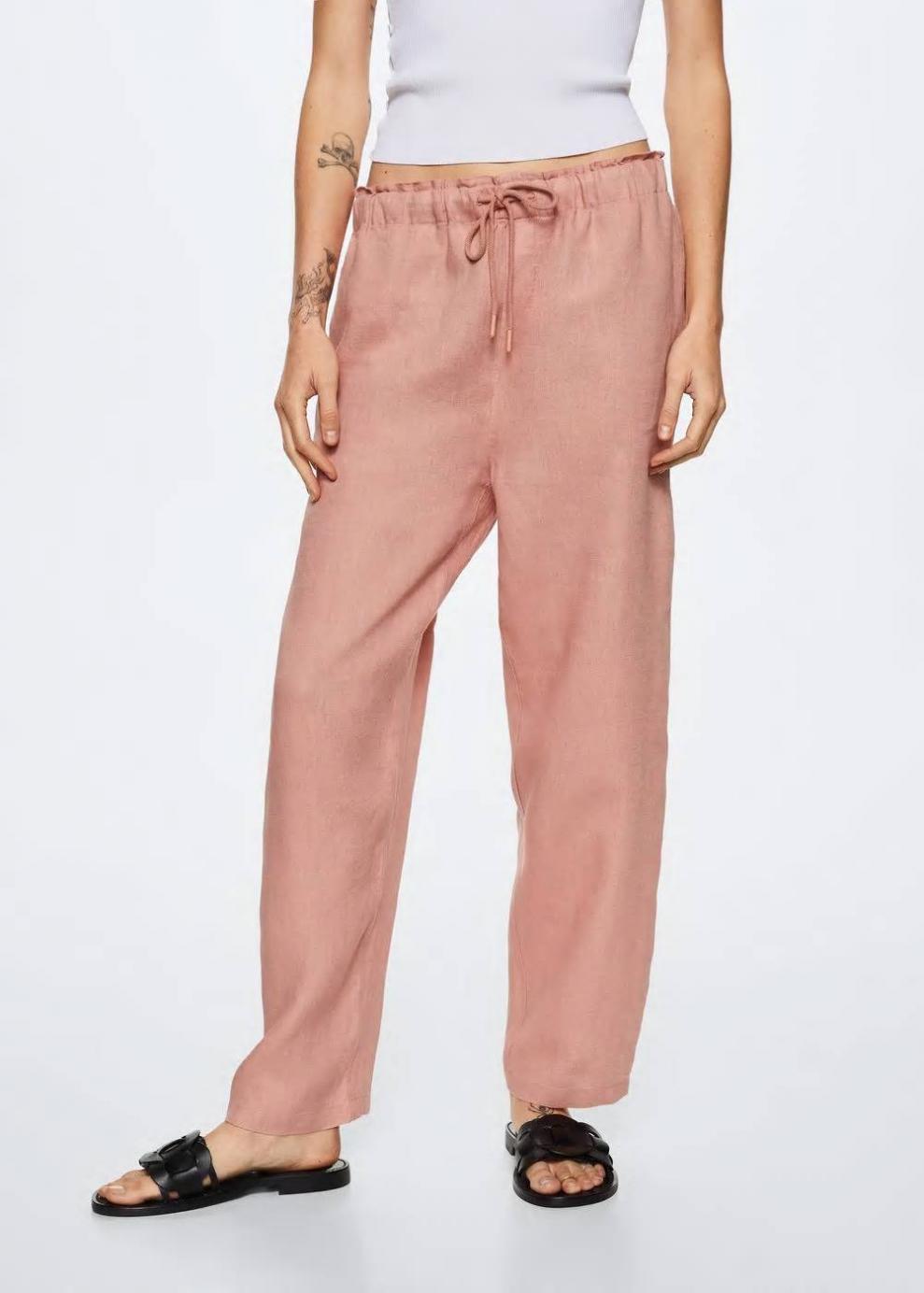 Mujer Pantalón 100% lino Rosa | Pantalones Mango