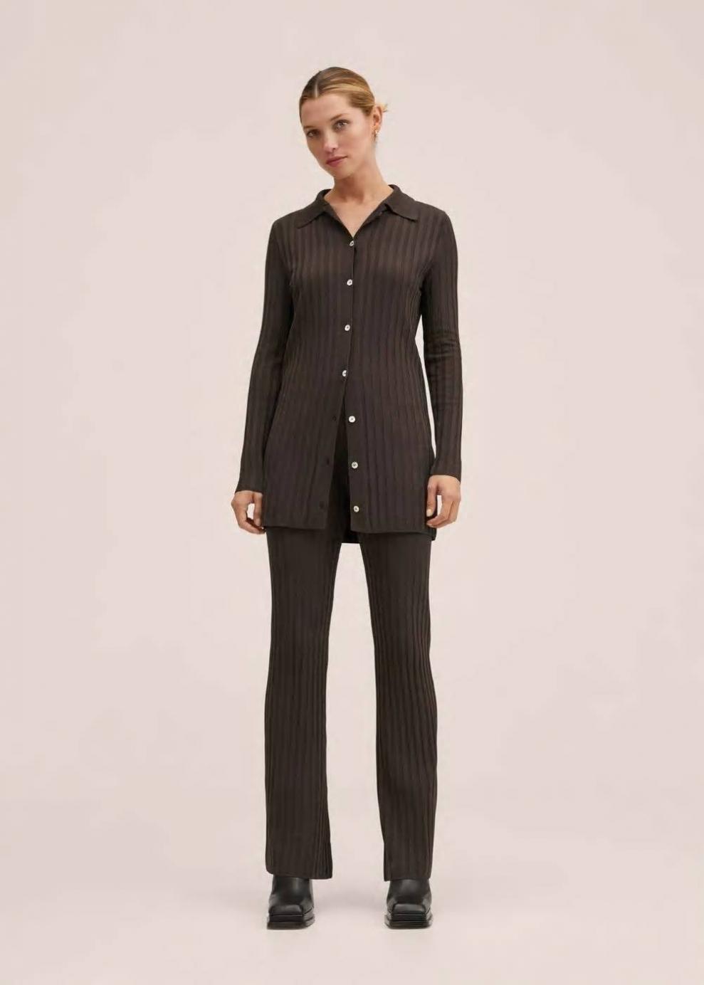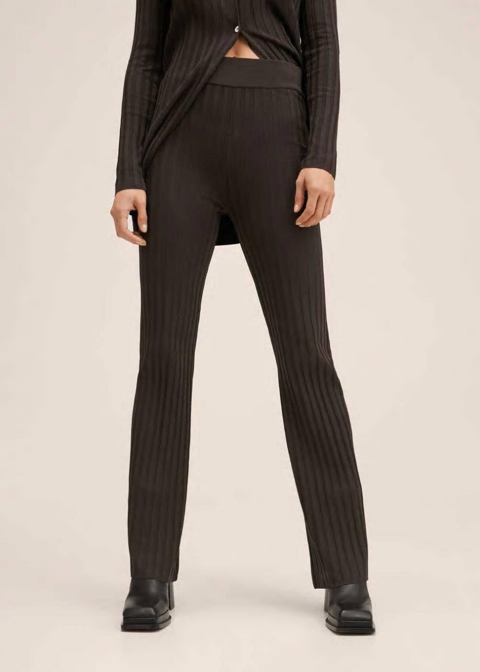 Mujer Pantalón acampanado canalé Marrón | Pantalones Mango