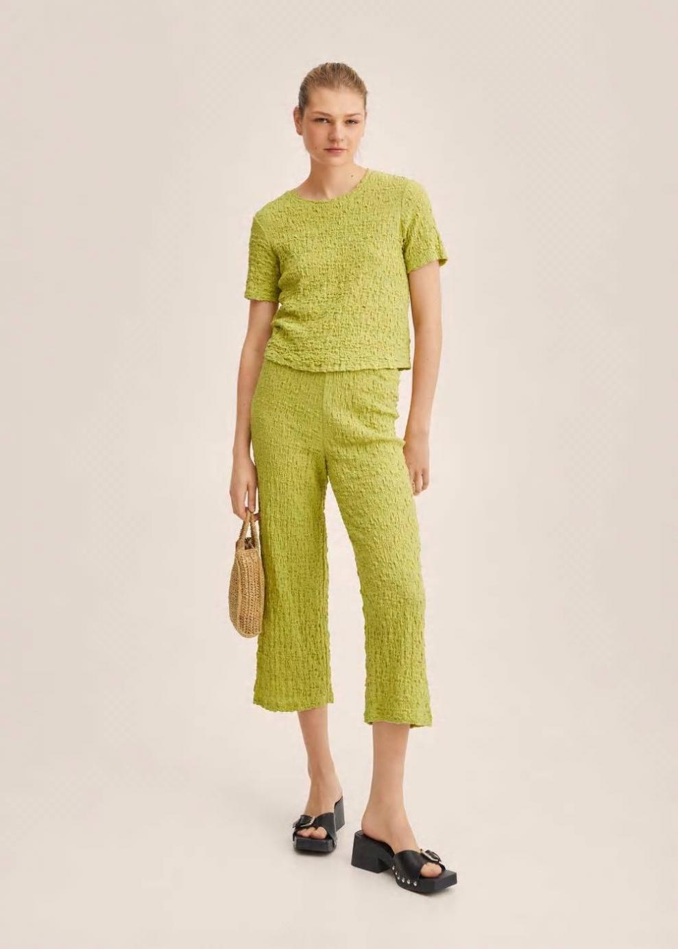 Mujer Pantalón algodón textura Verde Manzana | Pantalones Mango