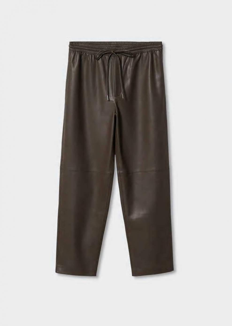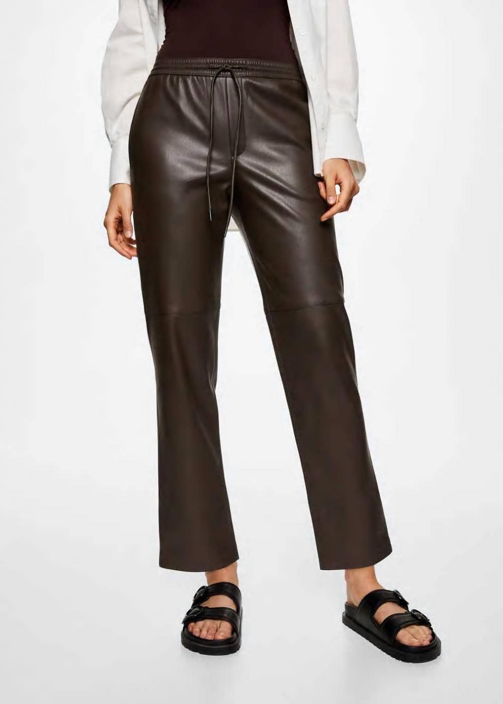 Efecto piel Diseño jogger Diseño largo Diseño recto Tiro medio Dos bolsillos laterales Cintura elástica con cordón ajustable