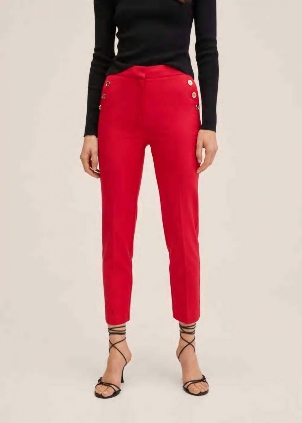 Mujer Pantalón crop botones Rojo | Pantalones Mango