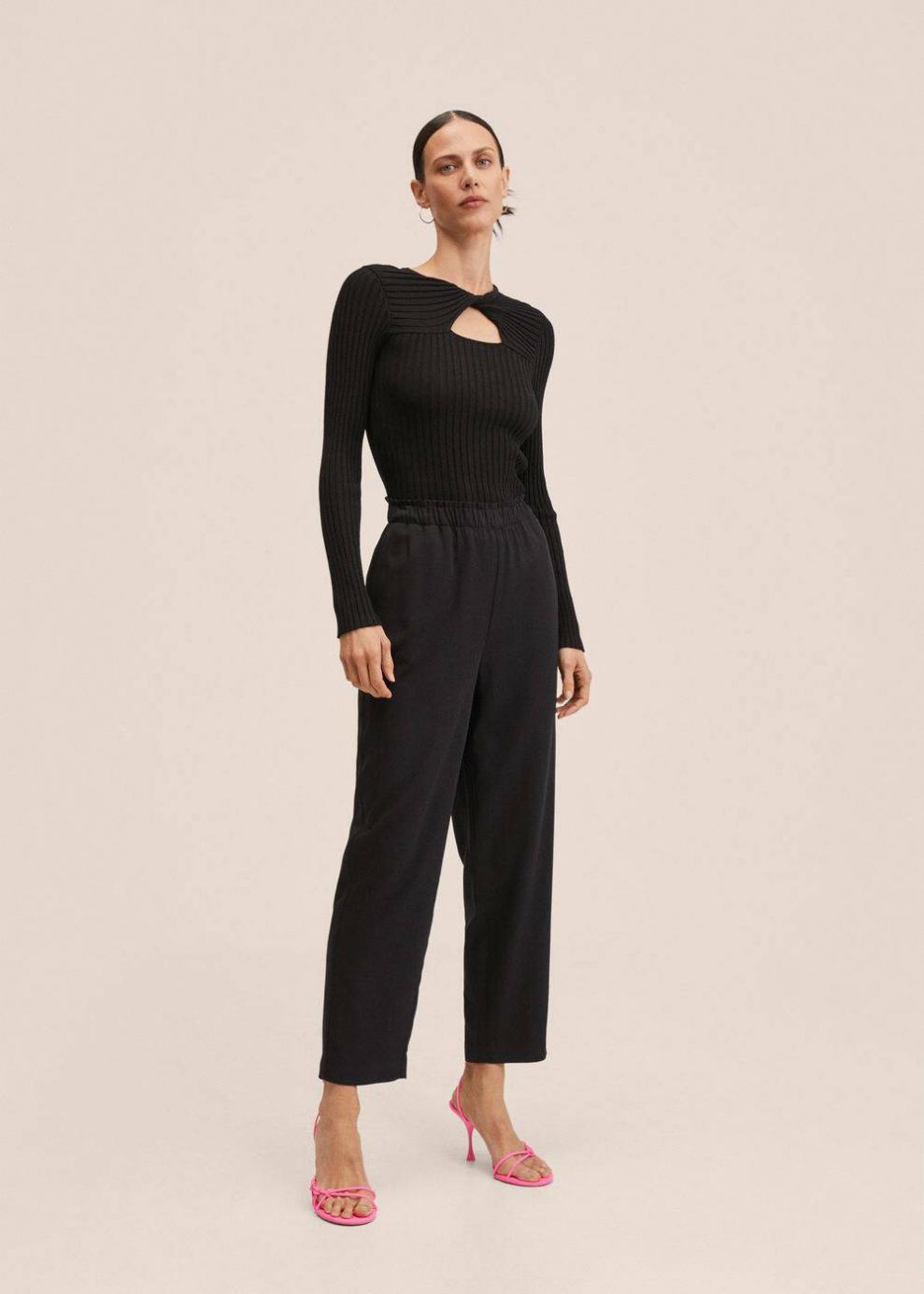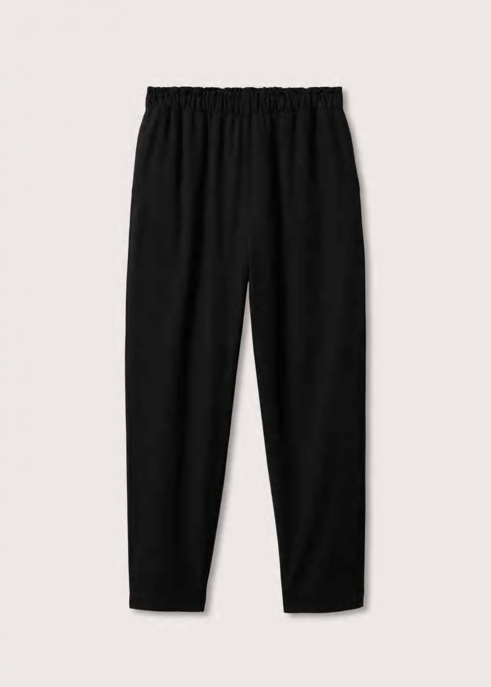 Colección Committed Tejido con lyocell Tejido fluido Diseño jogger Diseño crop Dos bolsillos laterales Fruncido elástico en la cintura Las prendas etiquetadas como Committed son productos que han sido confeccionadas con fibras y/o procesos de producción sostenible, reduciendo así su impacto ambiental. El objetivo de Mango es respaldar la implementación de prácticas más comprometidas con el medio ambiente, aumentando así, el número de prendas sostenibles en su colección.