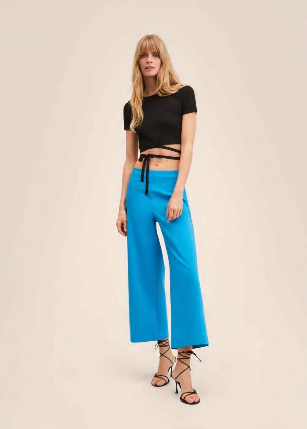 Mujer Pantalón culotte algodón Azul | Pantalones Mango