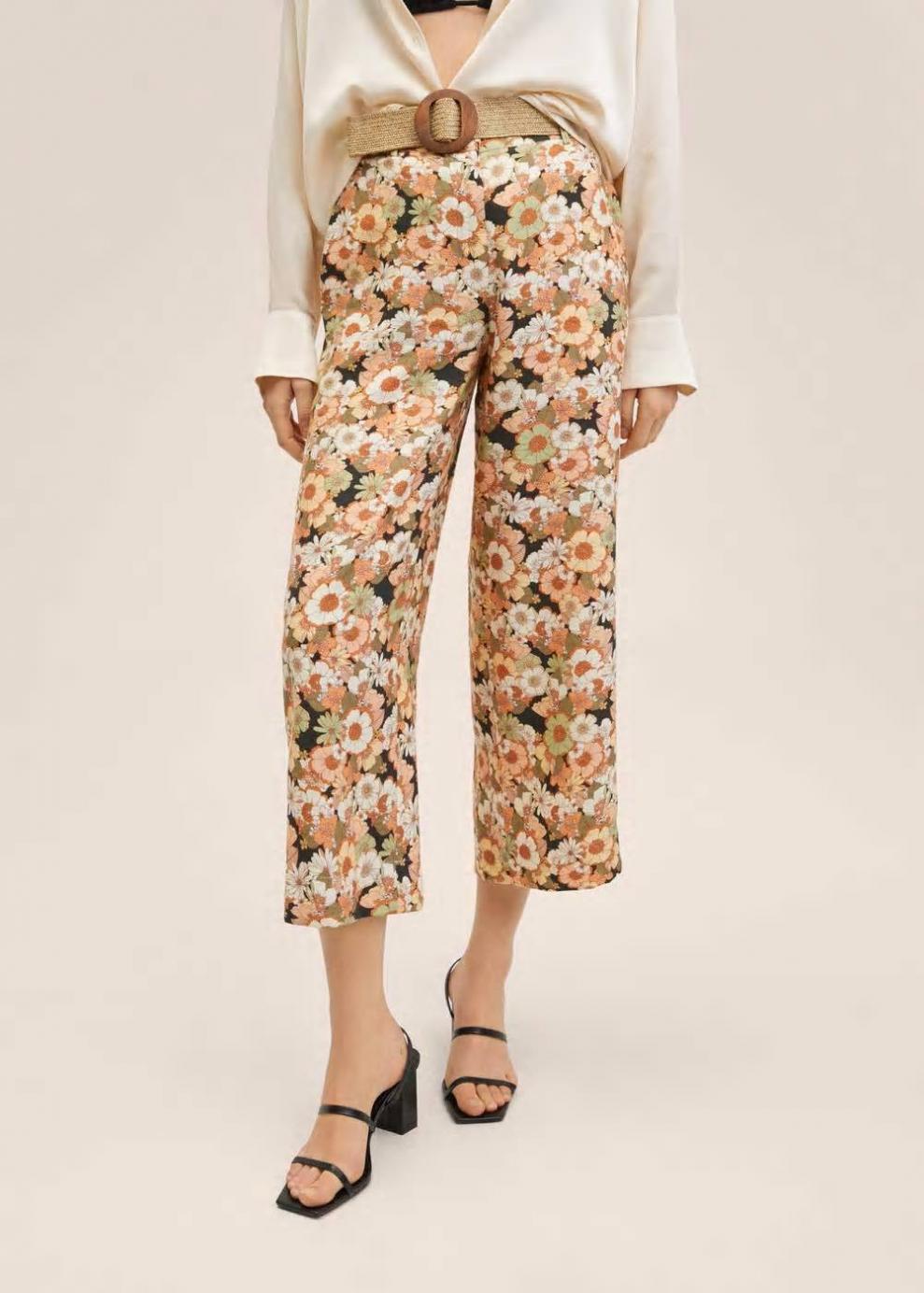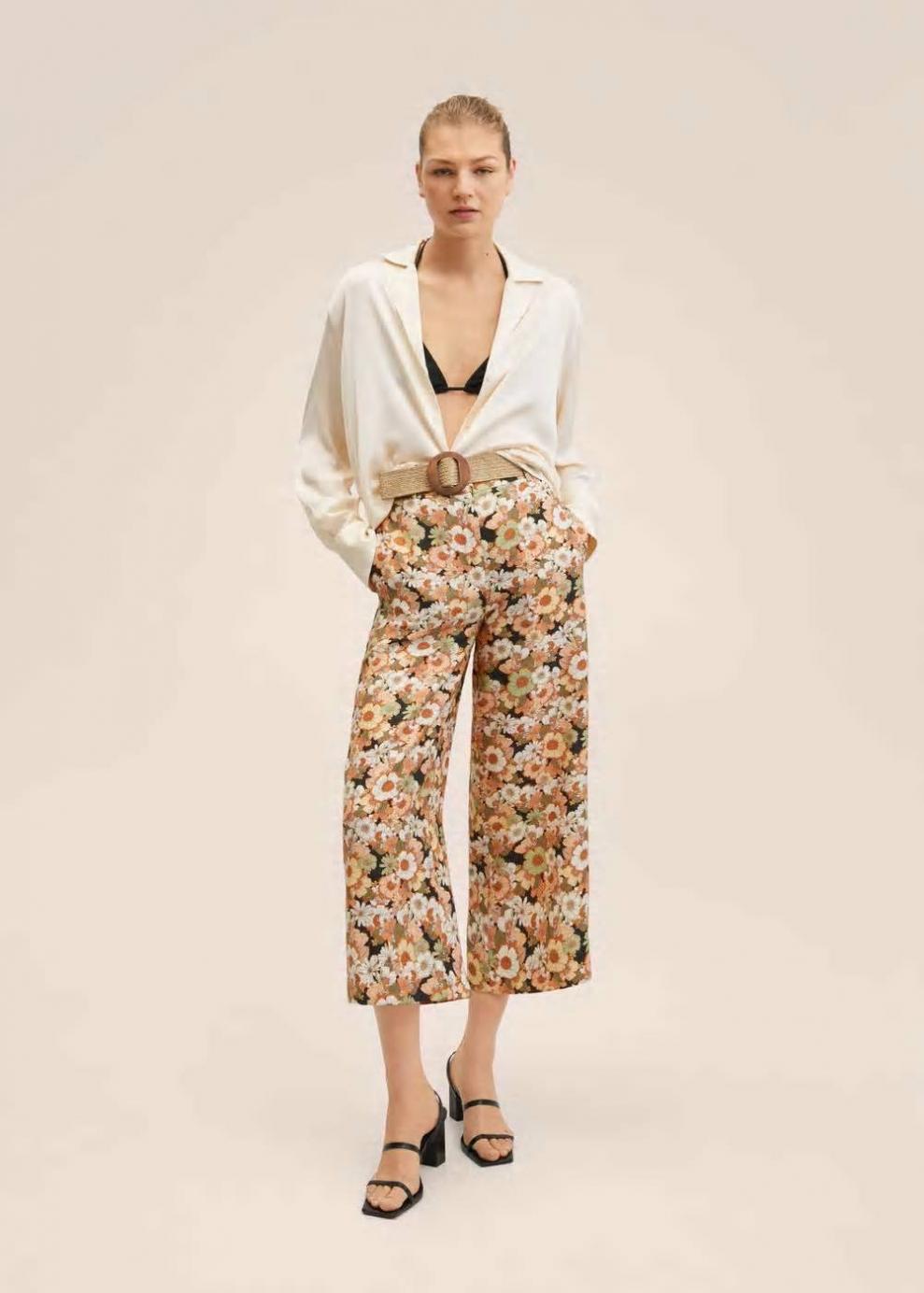 Colección Committed Tejido fluido Estampado floral Diseño culotte Diseño crop Fruncido elástico en la cintura Dos bolsillos laterales Cierre oculto de botón, gancho y cremallera Cinturón con cierre de hebilla Disponible Plus Las prendas etiquetadas como Committed son productos que han sido confeccionadas con fibras y/o procesos de producción sostenible, reduciendo así su impacto ambiental. El objetivo de Mango es respaldar la implementación de prácticas más comprometidas con el medio ambiente, aumentando así, el número de prendas sostenibles en su colección.
