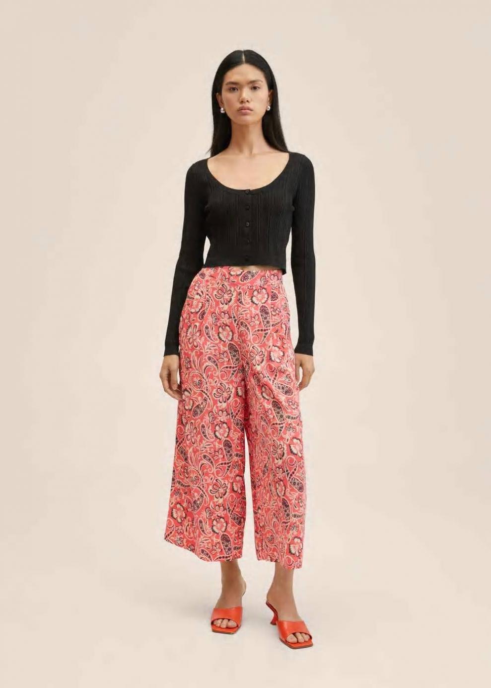 Tejido fluido Diseño crop Diseño culotte Dos bolsillos laterales Fruncido elástico en la cintura…
