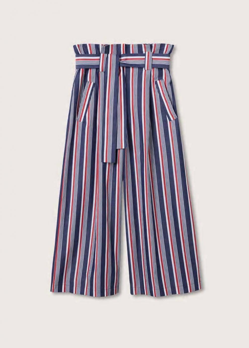 Tejido 100% algodón Regular fit Tejido ligero Diseño largo Estampado de rayas Diseño culotte Diseño crop Tiro alto Detalle fruncido en la cintura Cinturón desmontable Trabillas Dos bolsillos laterales Bolsillos decorativos enla parte posterior Cierre de gancho y cremallera Total look Las prendas etiquetadas como Committed son productos que han sido confeccionadas con fibras y/o procesos de producción sostenible, reduciendo así su impacto ambiental. El objetivo de Mango es respaldar la implementación de prácticas más comprometidas con el medio ambiente, aumentando así, el número de prendas sostenibles en su colección.