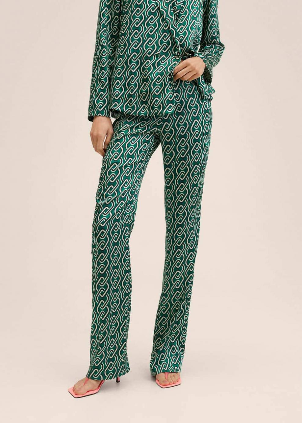 Tejido ligero Estampado de cadenas Goma elástica Diseño largo Diseño acampanado Cintura elástica Cierre lateral de cremallera Total look Las prendas etiquetadas como Committed son productos que han sido confeccionadas con fibras y/o procesos de producción sostenible, reduciendo así su impacto ambiental. El objetivo de Mango es respaldar la implementación de prácticas más comprometidas con el medio ambiente, aumentando así, el número de prendas sostenibles en su colección.