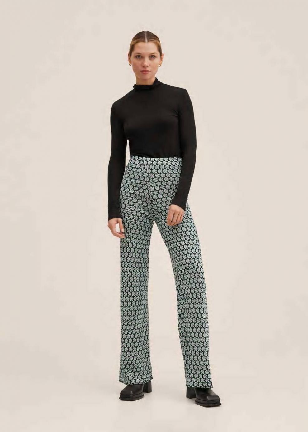 Tejido con algodón Tejido de punto fino Estampado retro Diseño recto Diseño largo Tiro alto Cintura elástica Total look Diseño recto Exclusivo Online