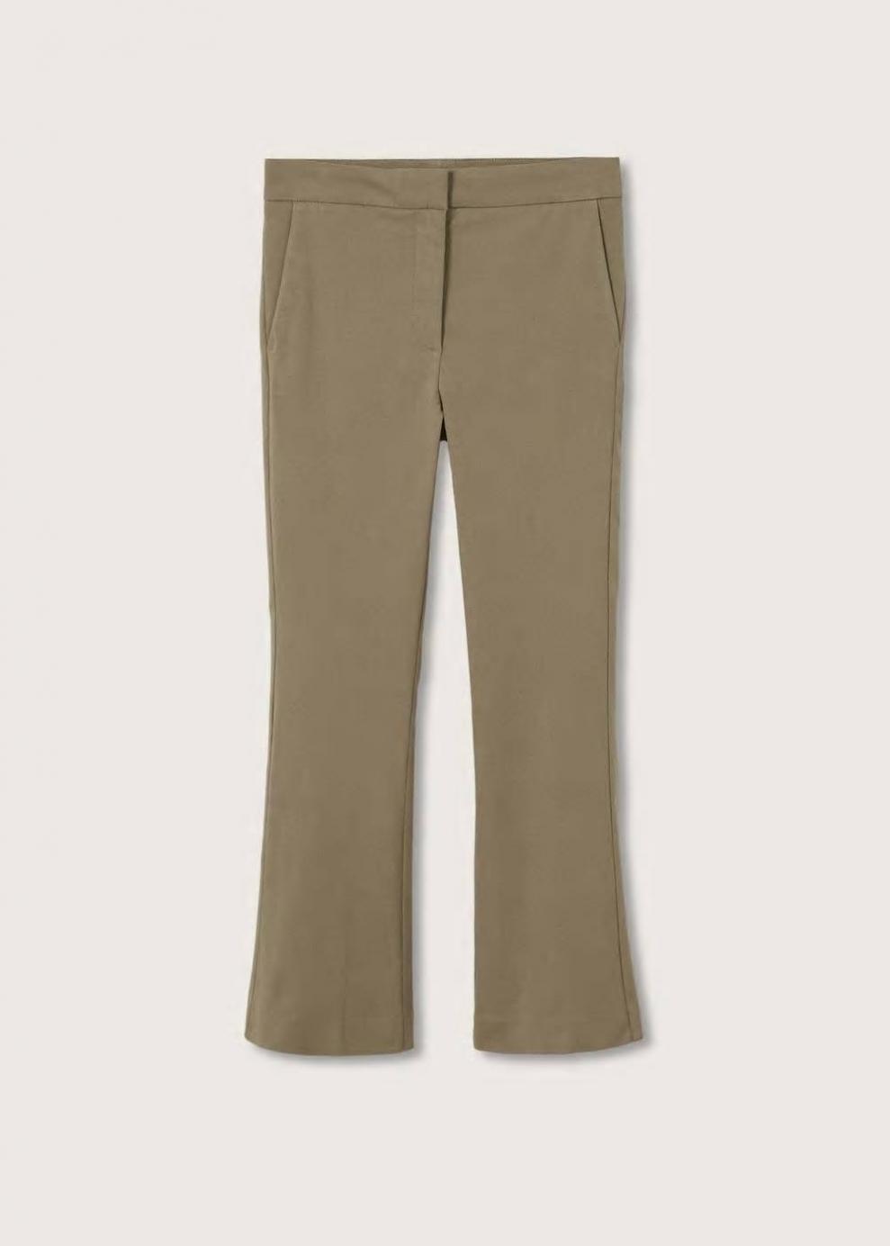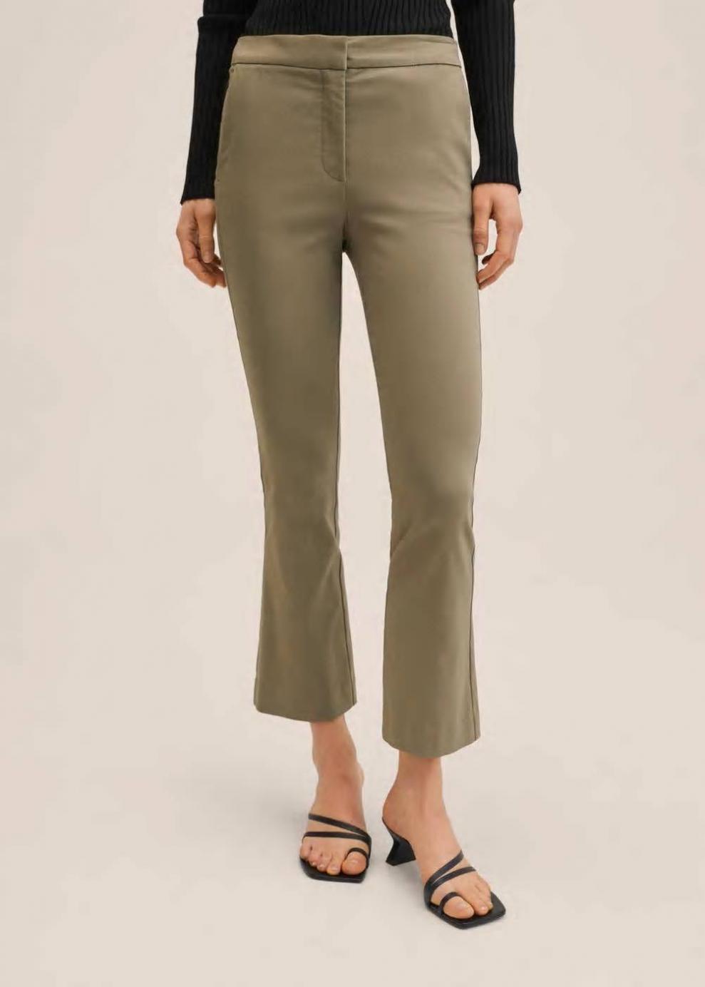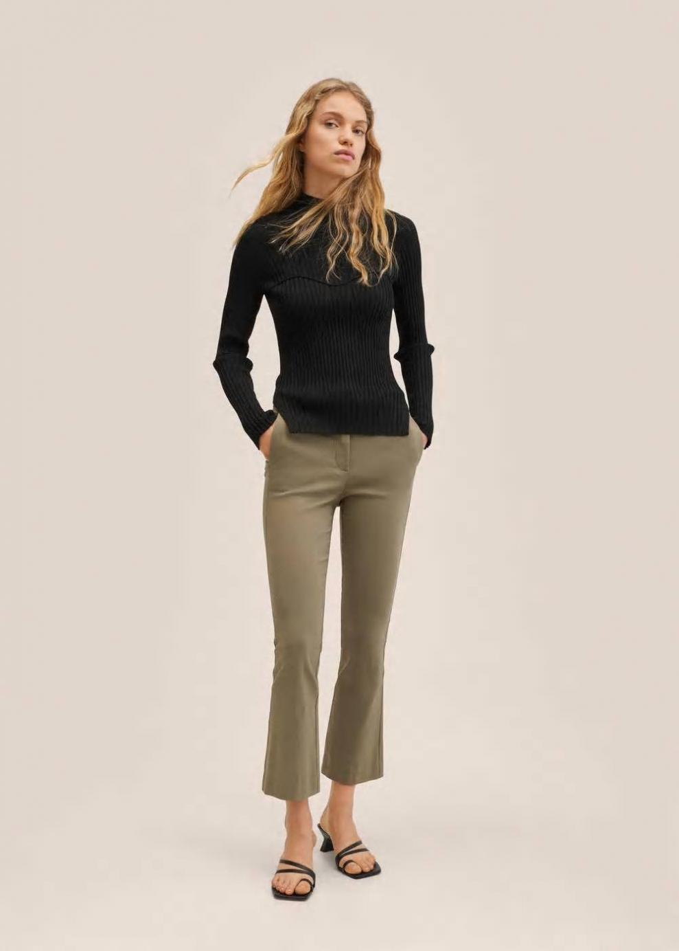 Colección Committed Tejido elástico Diseño crop Estilo flare Tiro medio Costuras decorativas en contraste Dos bolsillos laterales Bolsillos decorativos enla parte posterior Trabillas Forro interior Cierre oculto de botón, gancho y cremallera Disponible Plus Las prendas etiquetadas como Committed son productos que han sido confeccionadas con fibras y/o procesos de producción sostenible, reduciendo así su impacto ambiental. El objetivo de Mango es respaldar la implementación de prácticas más comprometidas con el medio ambiente, aumentando así, el número de prendas sostenibles en su colección.