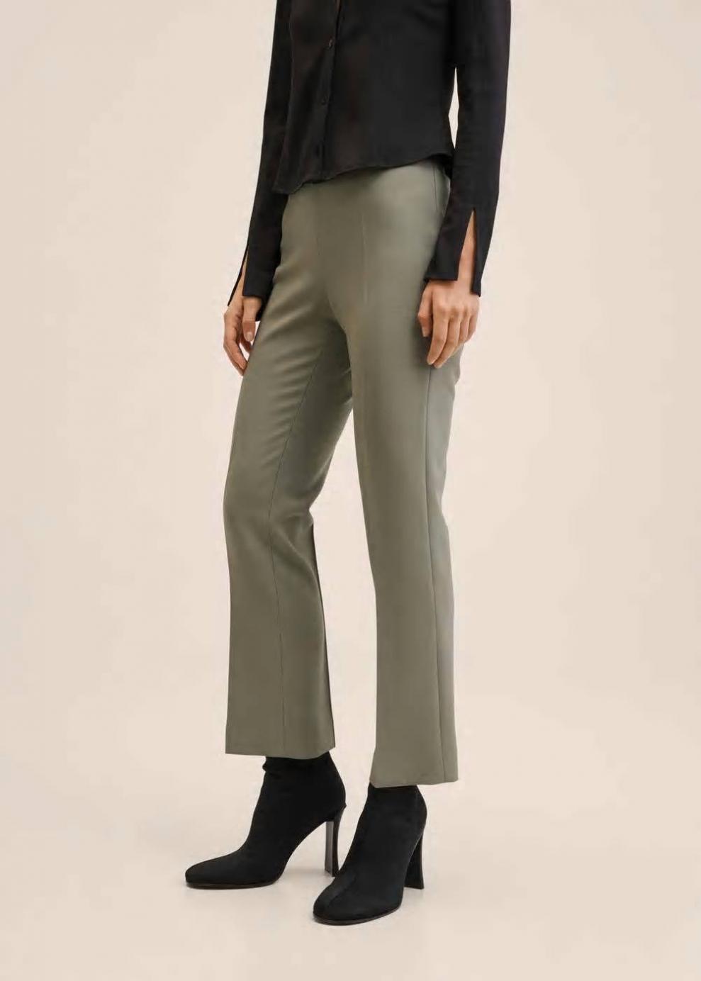 Colección Committed Tejido elástico Diseño crop Estilo flare Tiro medio Costuras decorativas Cintura elástica Cierre lateral de cremallera Disponible Plus Las prendas etiquetadas como Committed son productos que han sido confeccionadas con fibras y/o procesos de producción sostenible, reduciendo así su impacto ambiental. El objetivo de Mango es respaldar la implementación de prácticas más comprometidas con el medio ambiente, aumentando así, el número de prendas sostenibles en su colección.