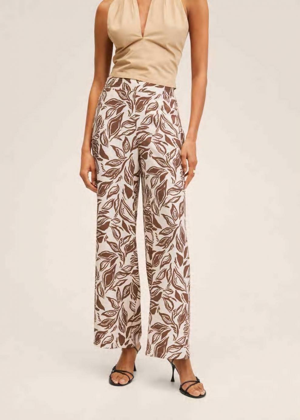 Tejido fluido Diseño estampado Diseño largo Diseño palazzo Dos bolsillos laterales Fruncido elástico en la cintura Disponible Plus