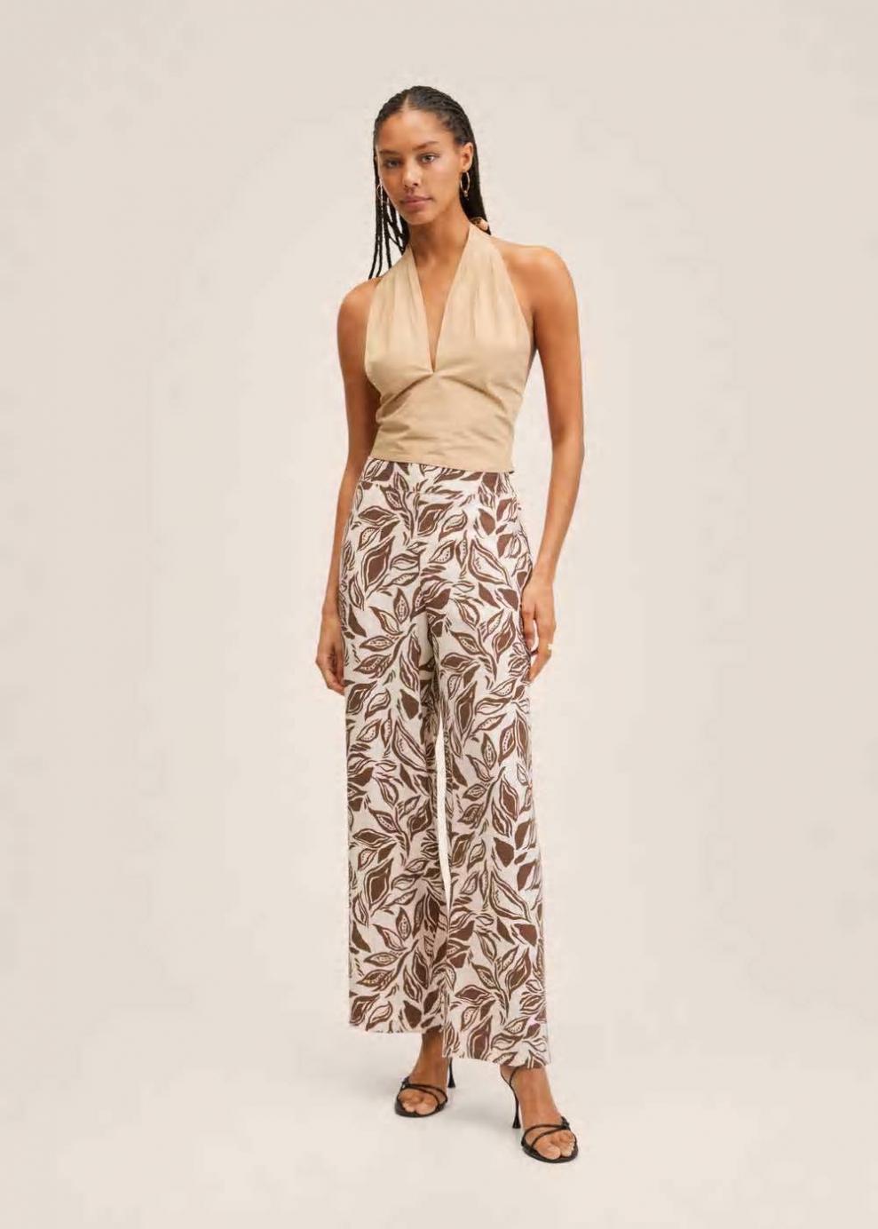 Tejido fluido Diseño estampado Diseño largo Diseño palazzo Dos bolsillos laterales Fruncido elástico en la cintura Disponible Plus…