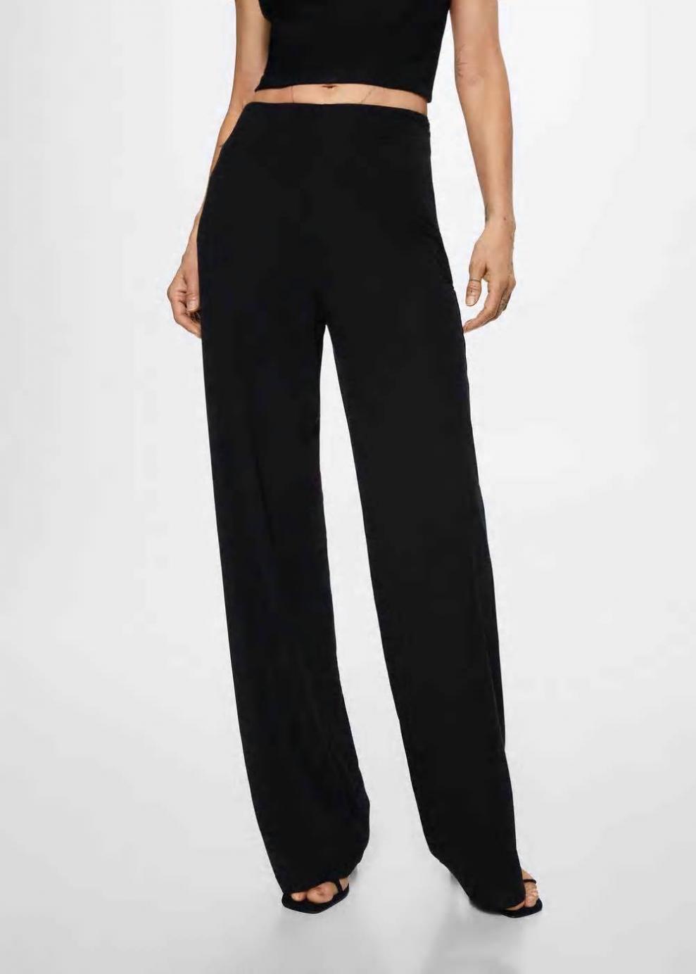 Mujer Pantalón palazzo fluido Negro | Pantalones Mango