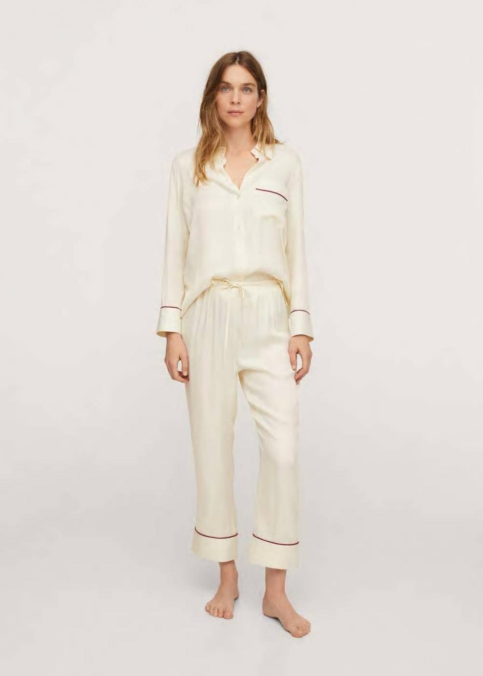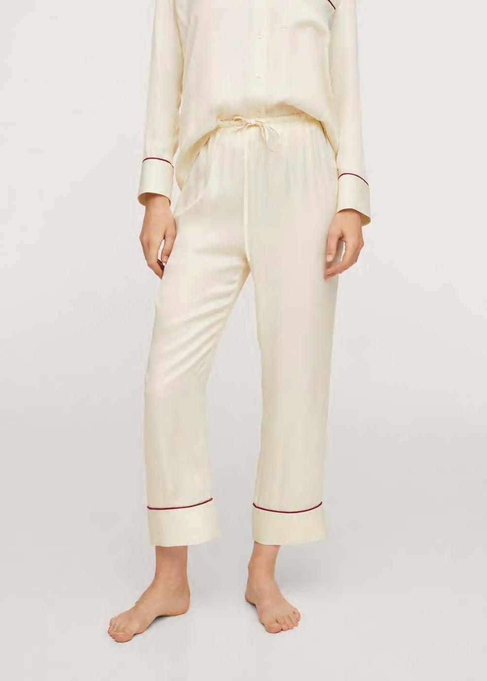 Tejido satinado Tejido fluido Diseño recto Diseño largo Tiro alto Ribetes de color en contraste Cintura elástica con cordón