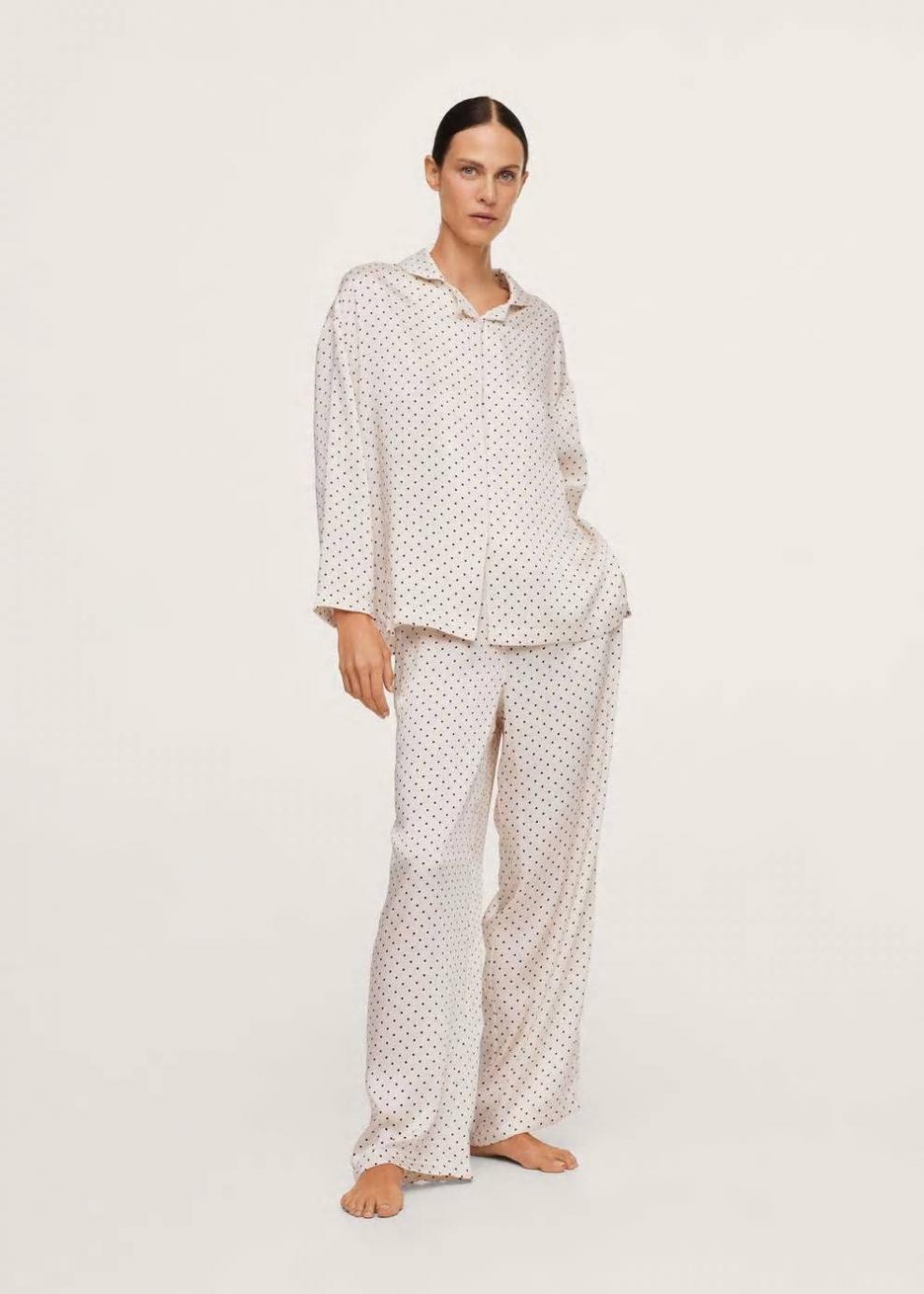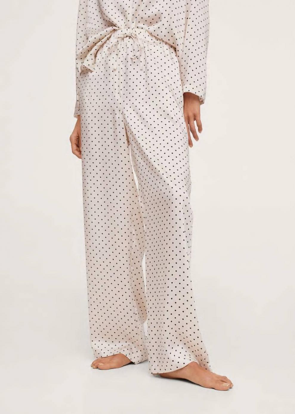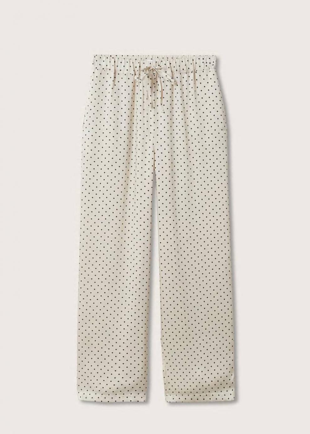 Tejido satinado Tejido fluido Estampado de lunares Diseño recto Tiro alto Cintura con cordón ajustable
