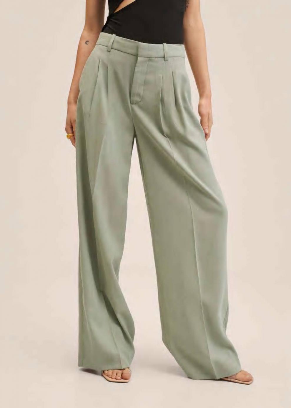 Mujer Pantalón pinzas wideleg Verde Pastel | Pantalones Mango