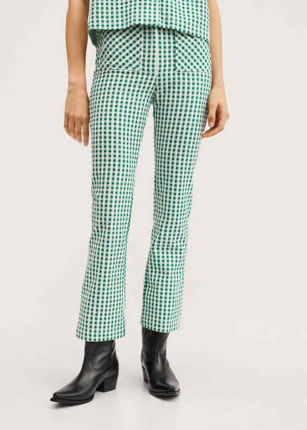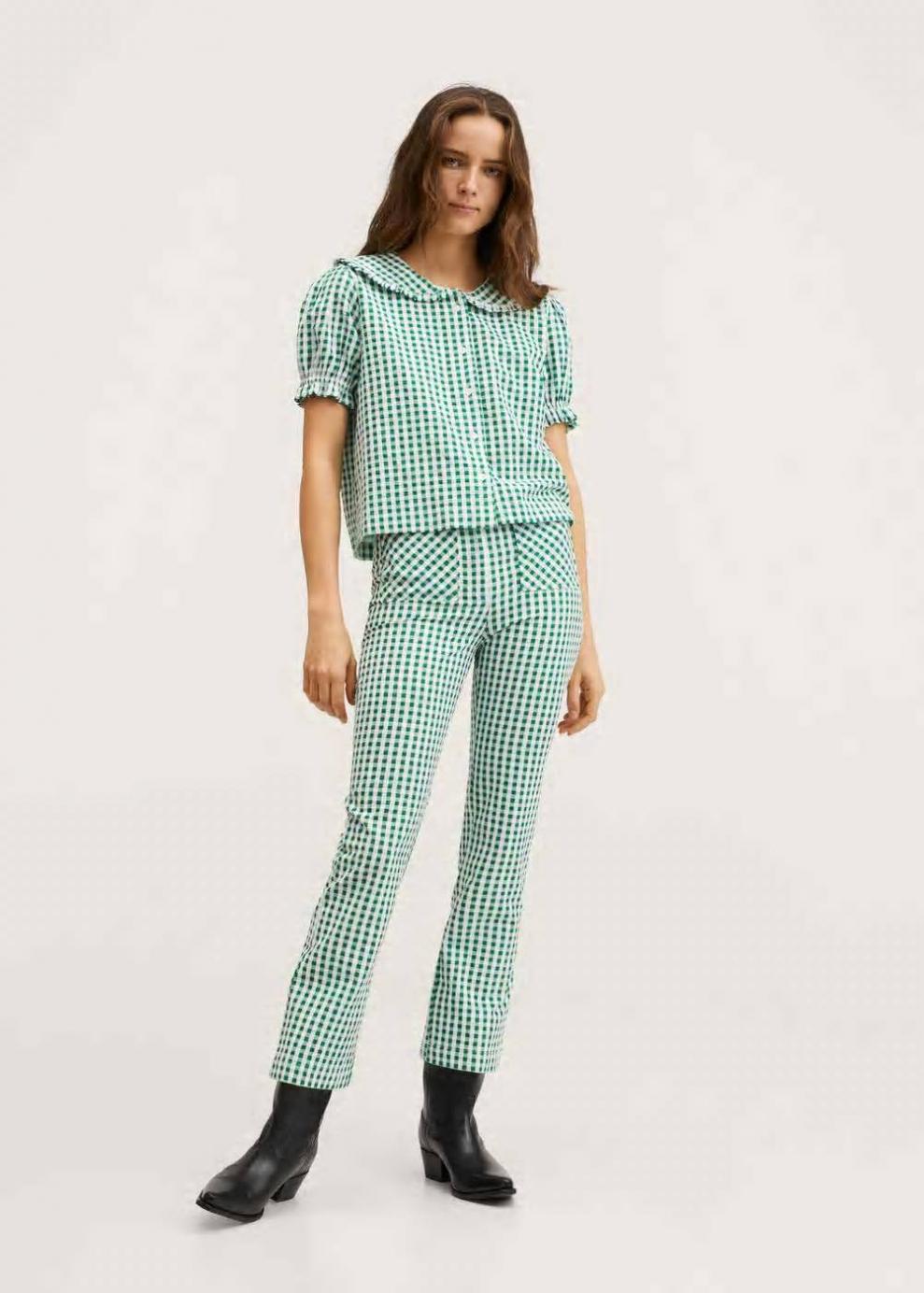 Diseño largo Colección Committed Regular fit Tejido mezcla de algodón Diseño recto Diseño crop Estampado de cuadros Dos bolsillos delanteros Cierre de cremallera y botón Total look Las prendas etiquetadas como Committed son productos que han sido confeccionadas con fibras y/o procesos de producción sostenible, reduciendo así su impacto ambiental. El objetivo de Mango es respaldar la implementación de prácticas más comprometidas con el medio ambiente, aumentando así, el número de prendas sostenibles en su colección.