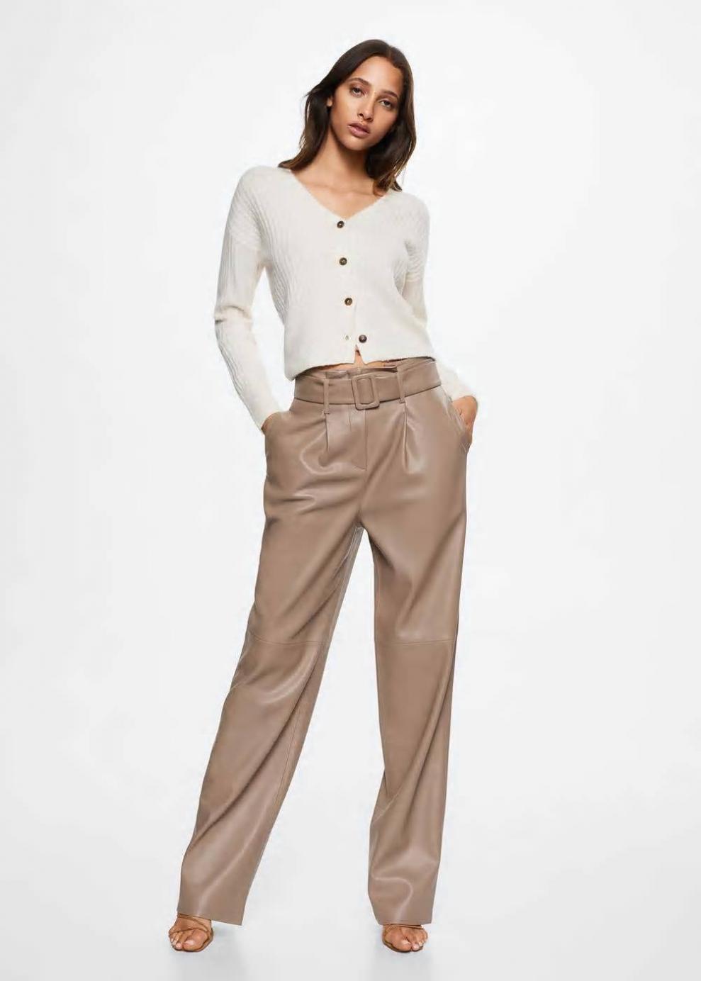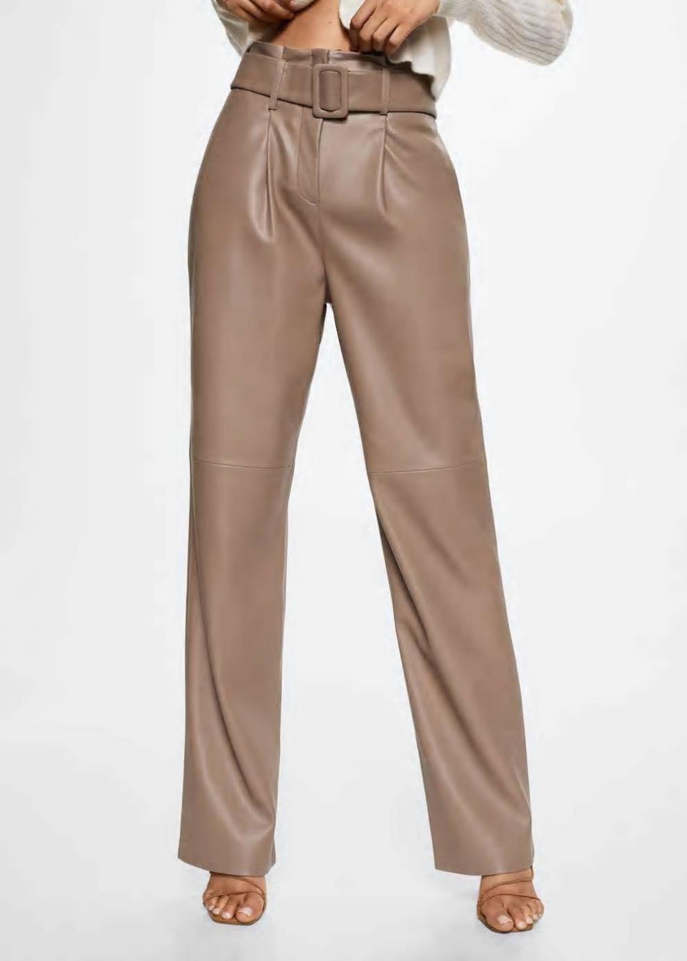 Sé el primero en valorar “Mujer Pantalón recto efecto piel Gris Claro/Pastel | Pantalones Mango”