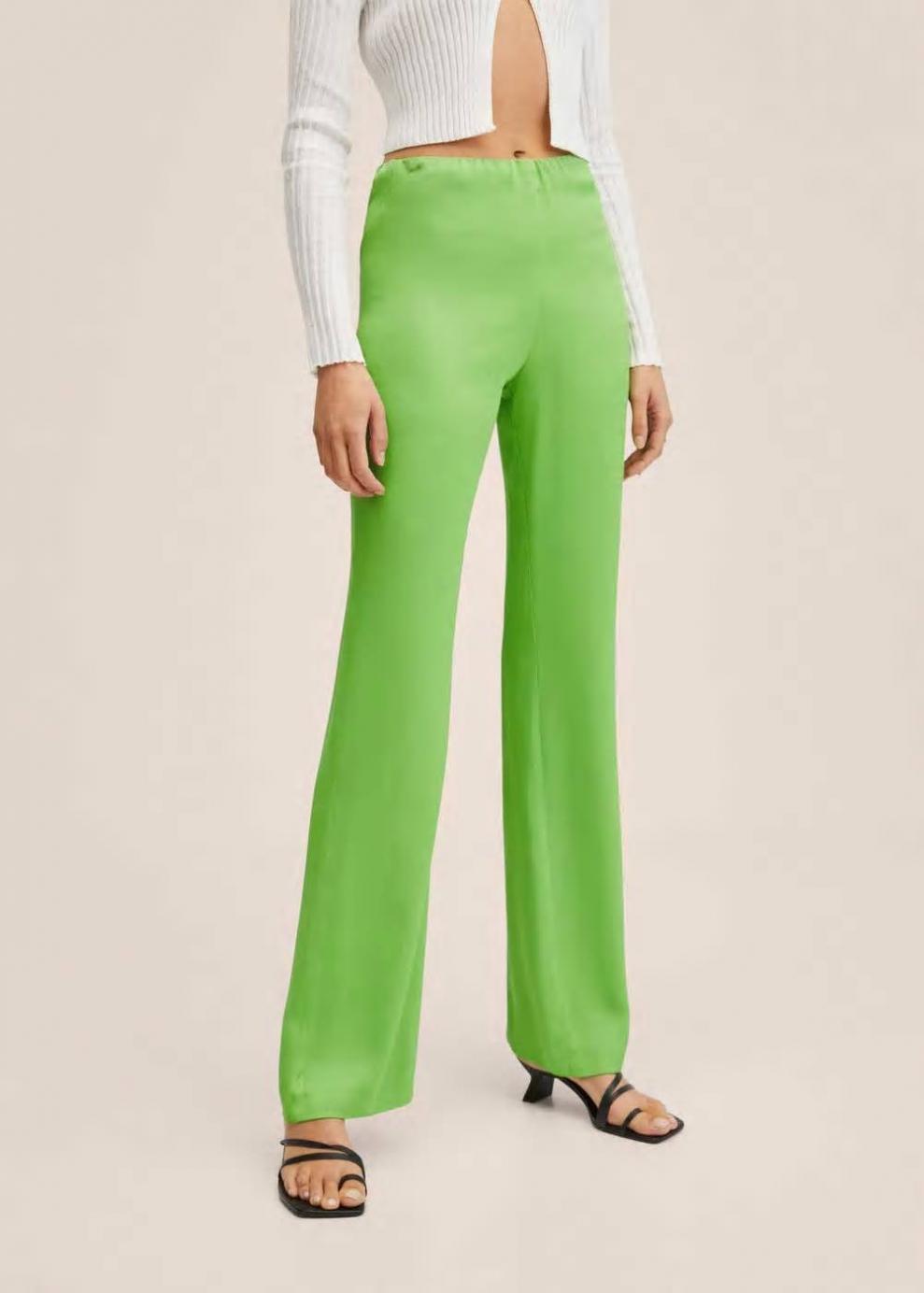 Mujer Pantalón recto fluido Verde | Pantalones Mango
