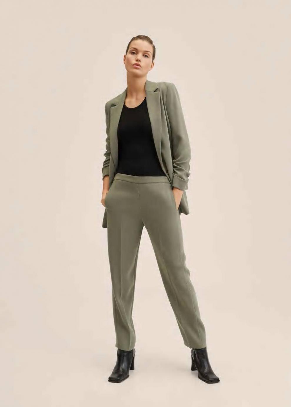 Mujer Pantalón recto traje Verde Pastel | Pantalones Mango
