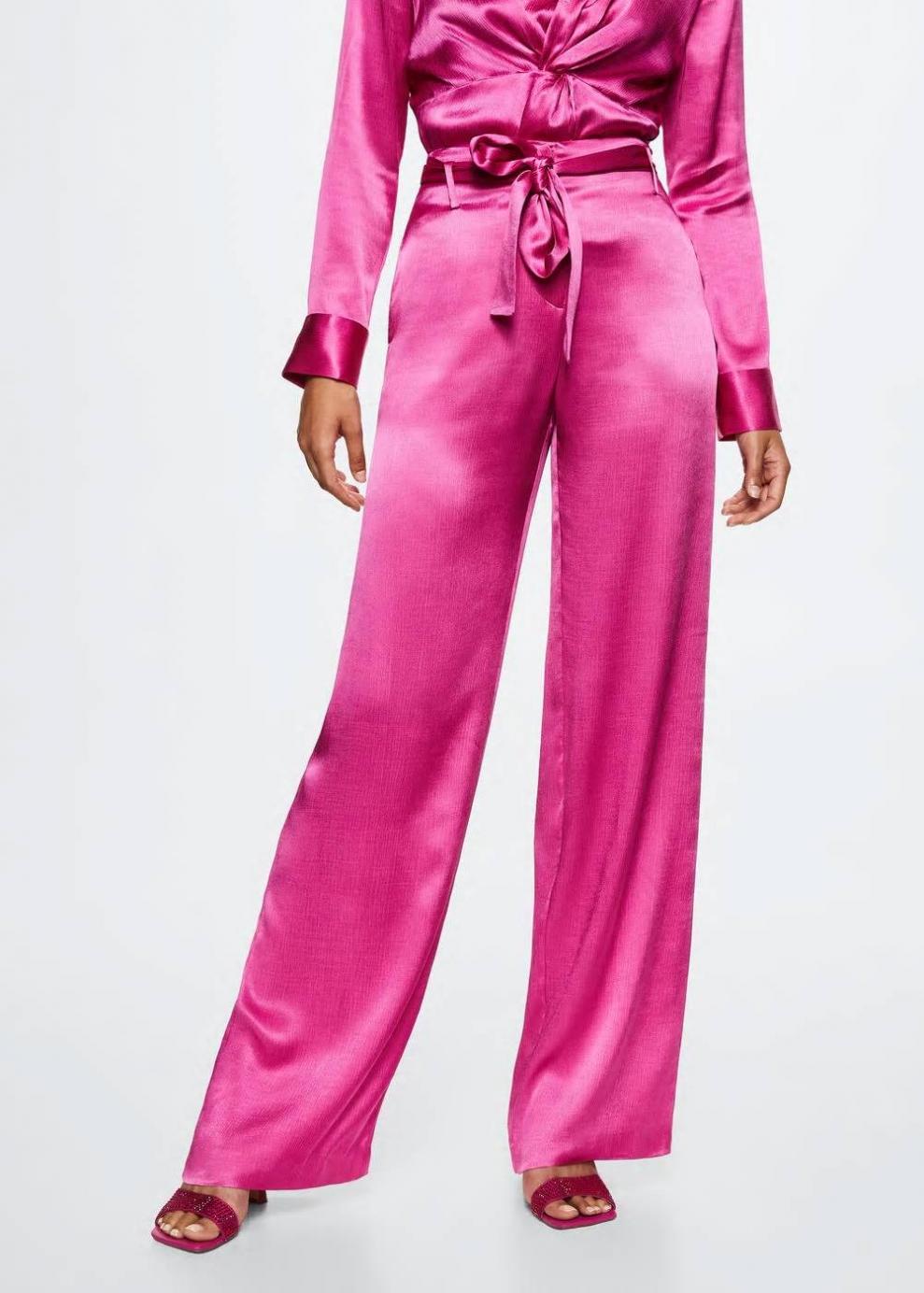 Tejido fluido Tejido satinado Diseño recto Diseño largo Cierre de lazo Trabillas Dos bolsillos laterales Total look Colección fiesta y ceremonia…