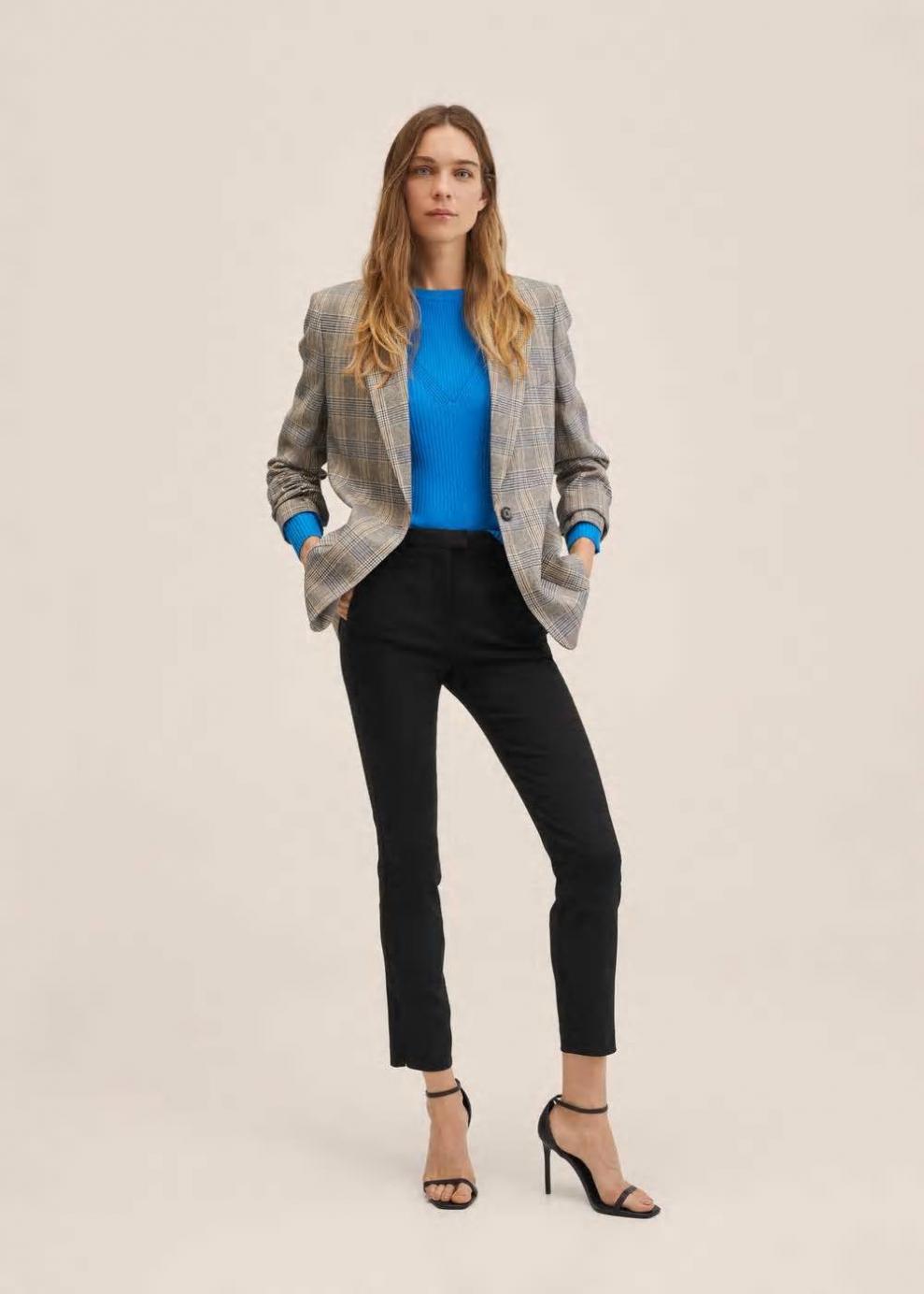 Colección Committed Tejido fluido Corte skinny Diseño crop Tiro medio Estilo traje Dos bolsillos laterales Dos bolsillos de ribete en la parte posterior Trabillas Forro interior Cierre de cremallera y botón Las prendas etiquetadas como Committed son productos que han sido confeccionadas con fibras y/o procesos de producción sostenible, reduciendo así su impacto ambiental. El objetivo de Mango es respaldar la implementación de prácticas más comprometidas con el medio ambiente, aumentando así, el número de prendas sostenibles en su colección.