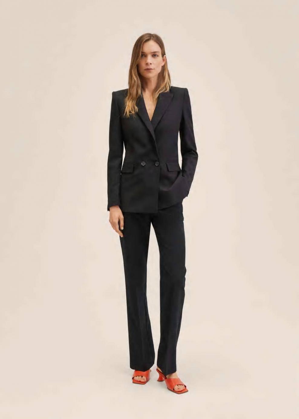 Tejido mezcla de lana Tamaño mediano Tiro bajo Diseño recto Diseño largo Tiro alto Detalle de pinzas Dos bolsillos laterales Bolsillos decorativos enla parte posterior Cierre oculto de botón, gancho y cremallera Total look