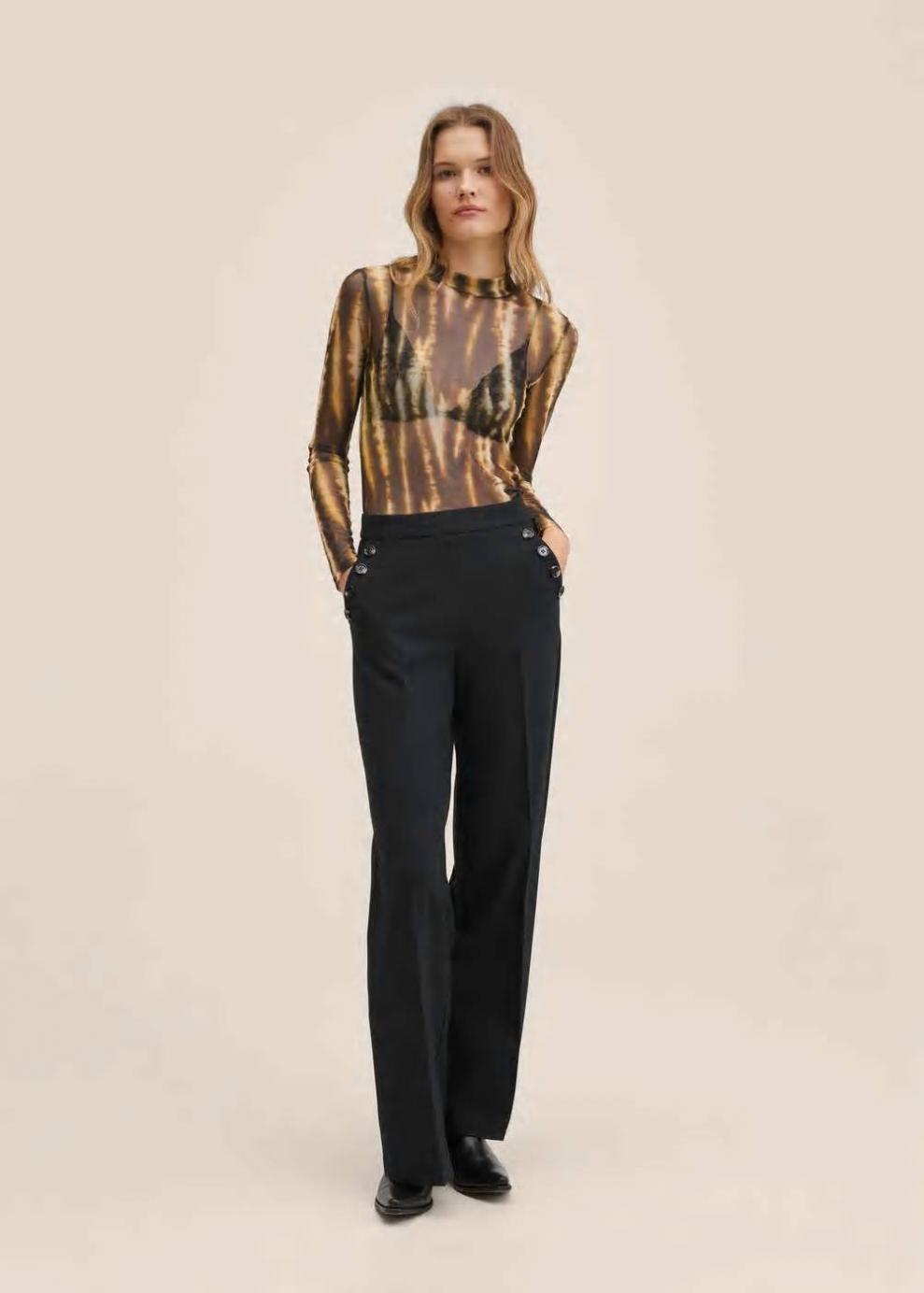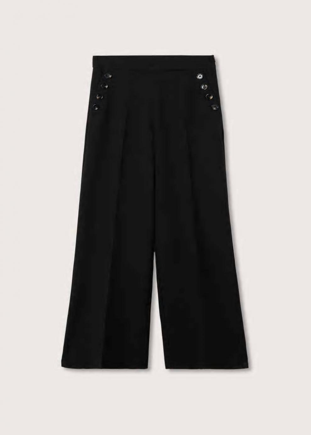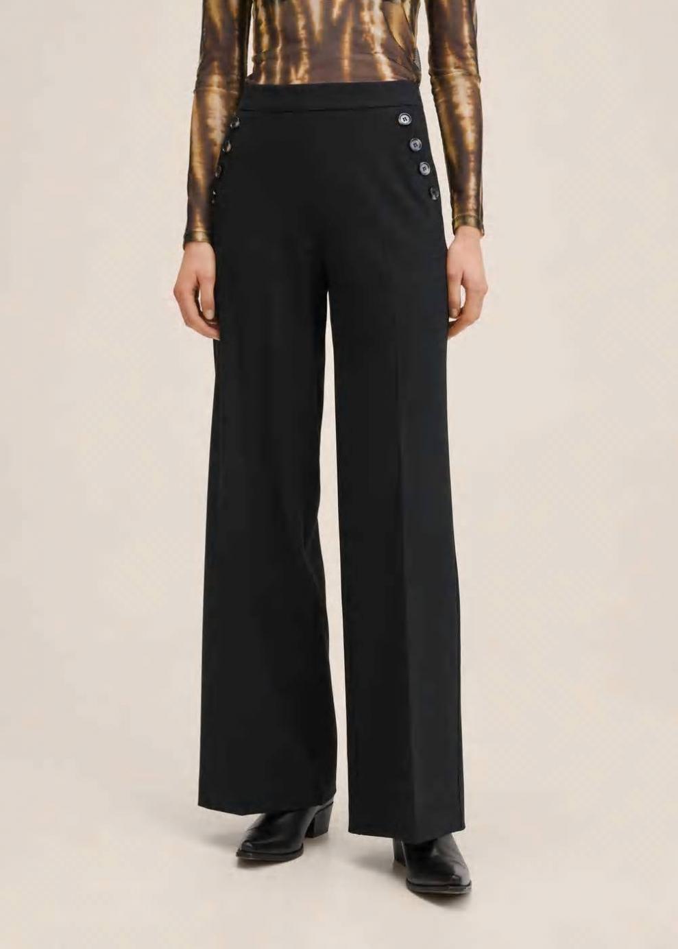 Tamaño mediano Diseño recto Colección Committed Diseño wideleg Diseño largo Tiro alto Dos bolsillos laterales Detalle de botones decorativos Forro interior Cierre lateral de cremallera Disponible Plus Las prendas etiquetadas como Committed son productos que han sido confeccionadas con fibras y/o procesos de producción sostenible, reduciendo así su impacto ambiental. El objetivo de Mango es respaldar la implementación de prácticas más comprometidas con el medio ambiente, aumentando así, el número de prendas sostenibles en su colección.