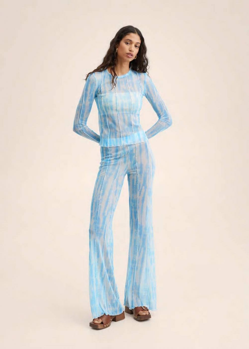Mujer Pantalón wideleg estampado Verde Agua | Pantalones Mango