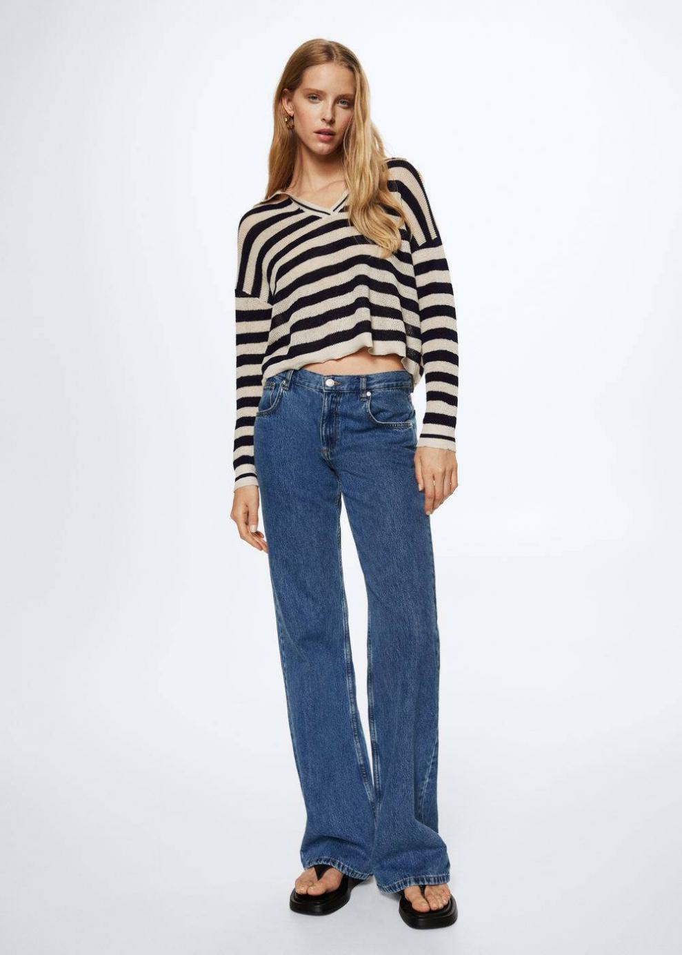 Tejido de punto fino Estampado de rayas Diseño oversize Diseño corto Cuello polo Manga larga…