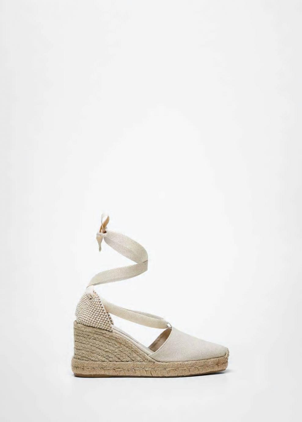 Cuña Punta redonda Suela de caucho El tacón mide 10 cm Cierre de tiras Estilo boho