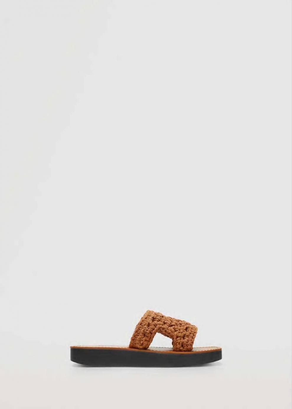 Tejido mezcla de algodón y lino Detalle de crochet Punta redonda Flat Estilo boho…