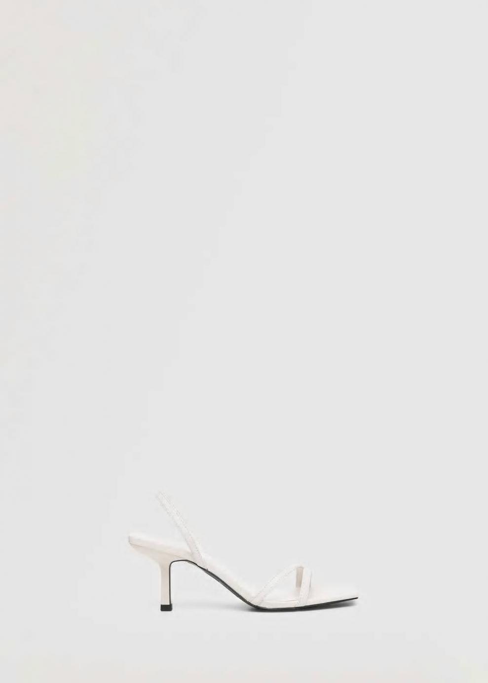 Colección Committed 100% Piel Diseño de tiras Punta cuadrada Tacón de aguja El tacón mide 7 cm Las prendas etiquetadas como Committed son productos que han sido confeccionadas con fibras y/o procesos de producción sostenible, reduciendo así su impacto ambiental. El objetivo de Mango es respaldar la implementación de prácticas más comprometidas con el medio ambiente, aumentando así, el número de prendas sostenibles en su colección.